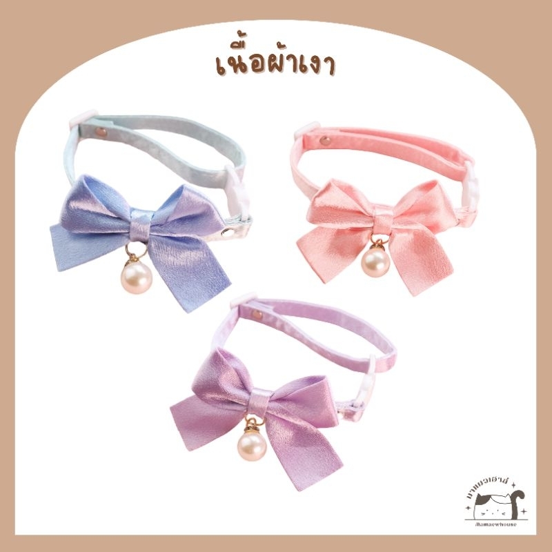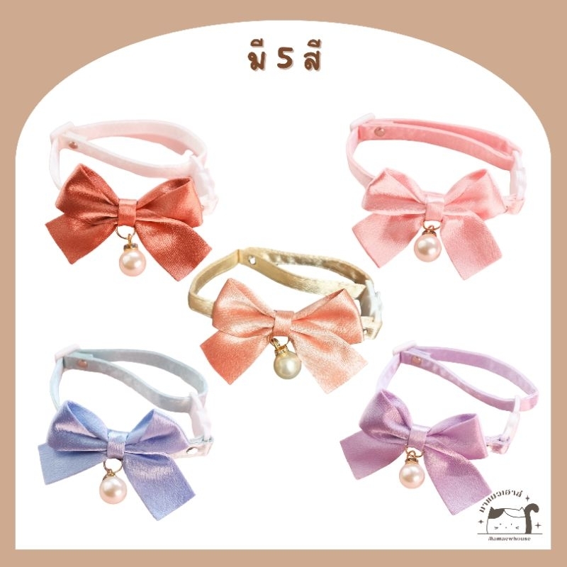 ปลอกคอโบว์จี้มุก ตัวล็อคนิรภัย มี 5 สี