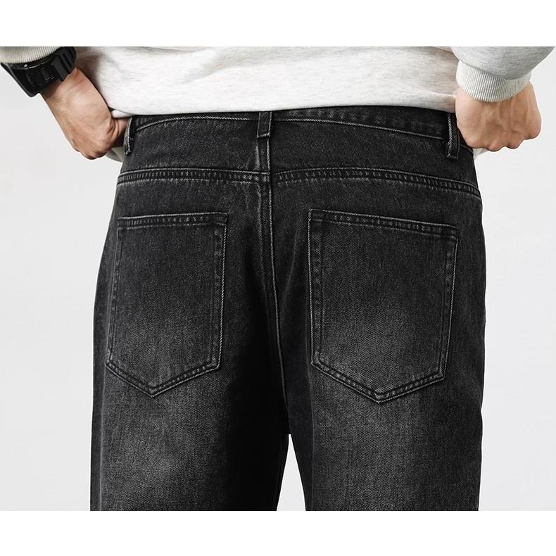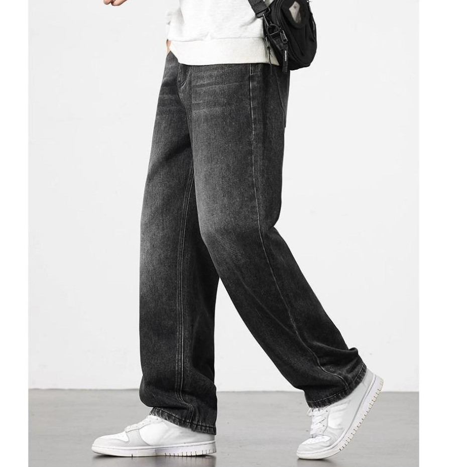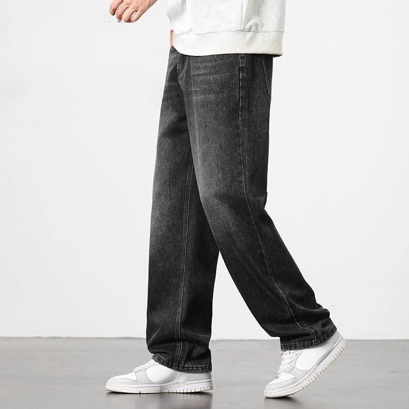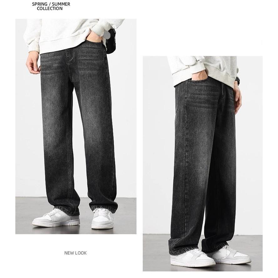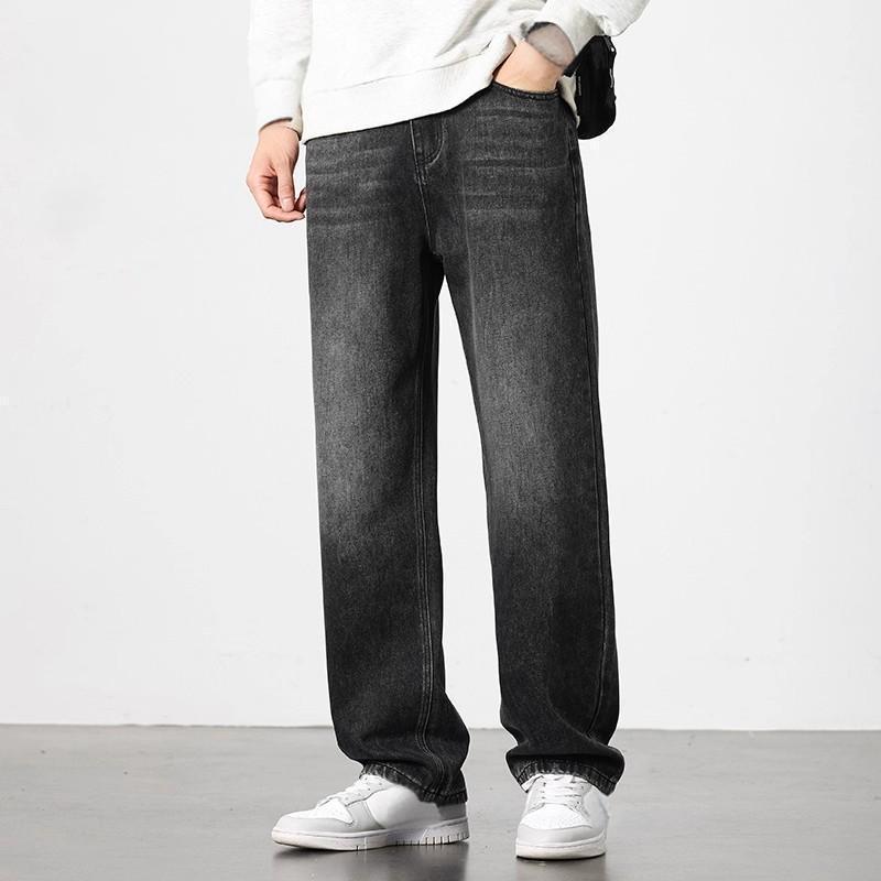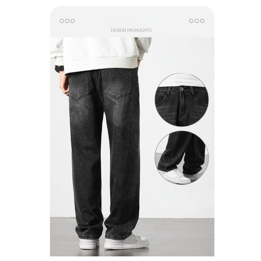 beerbroth-กางเกงยีนส์ผู้ชาย ขากระบอก ทรงหลวม ฮิปฮอปย้อนยุค ใส่สบาย สีพื้น สไตล์เกาหลี baggyjeans