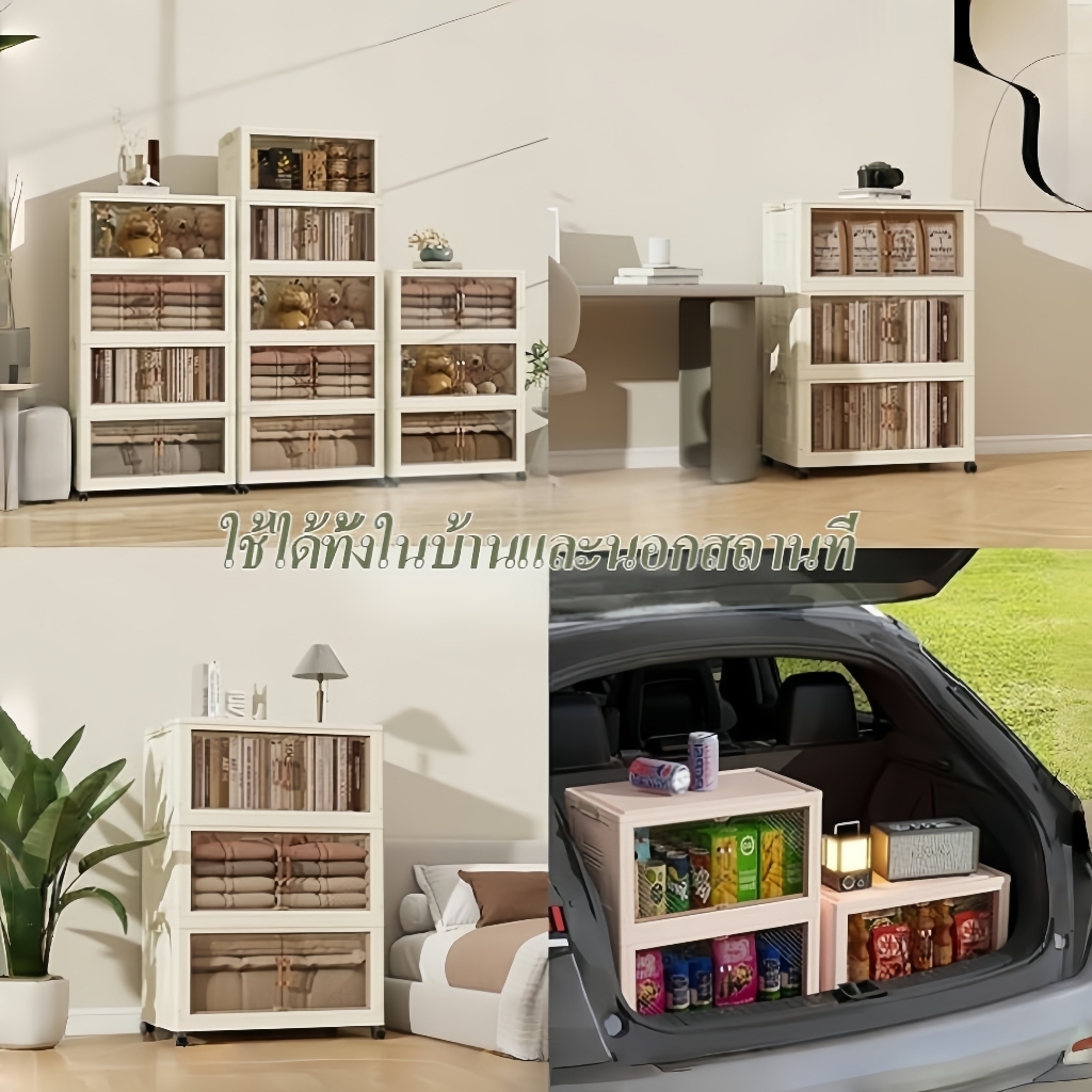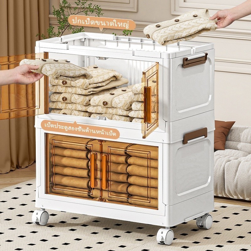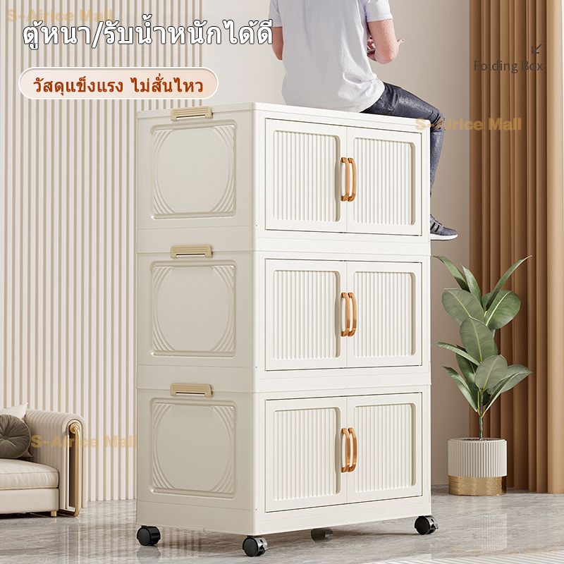 S-Airice ตู้เก็บของขนาดใหญ่ ตู้เก็บของพับได้ ตู้เสื้อผ้ามีล้อ กล่องเก็บของพลาสติก ตู้เสื้อผ้าเด็ก วัสดุ PP