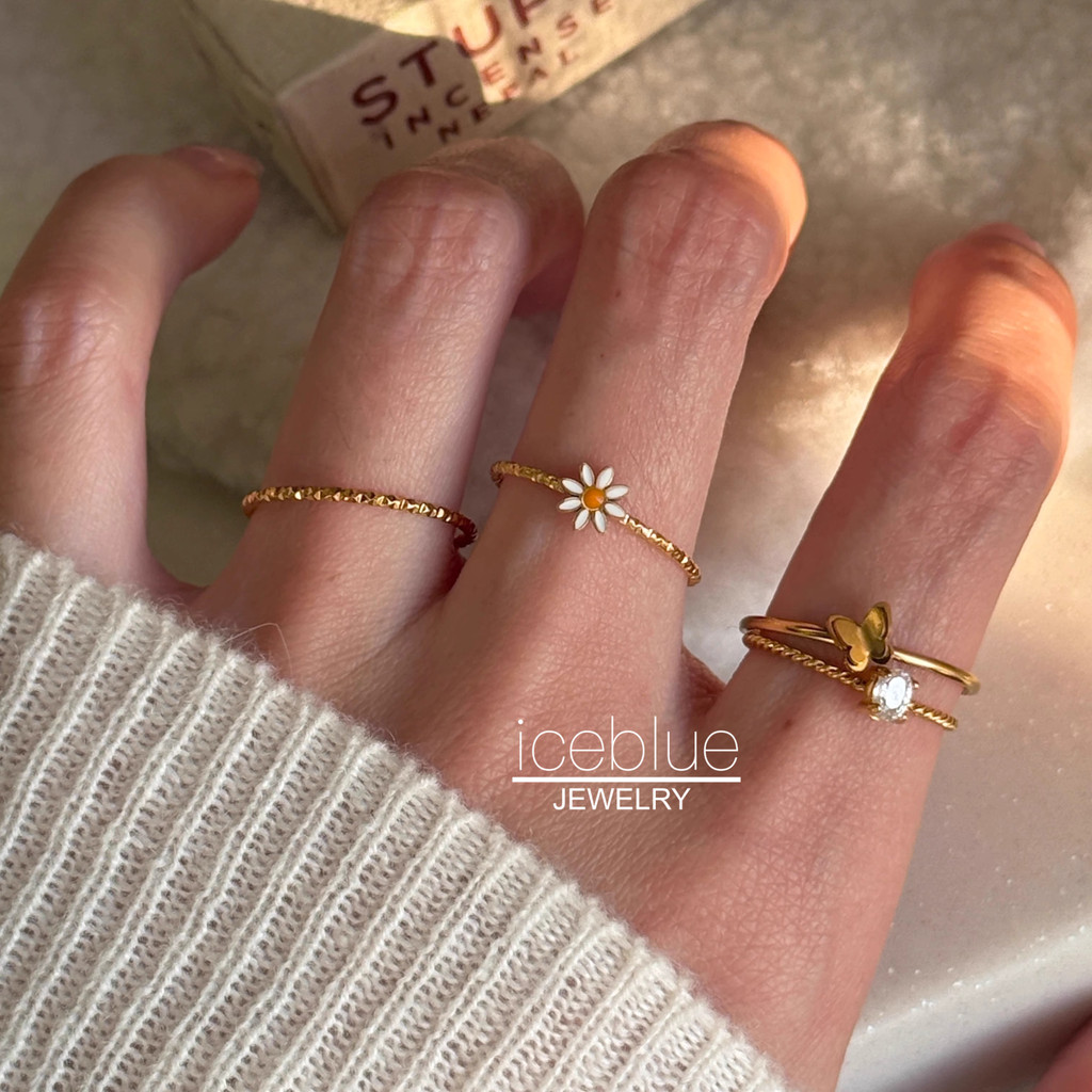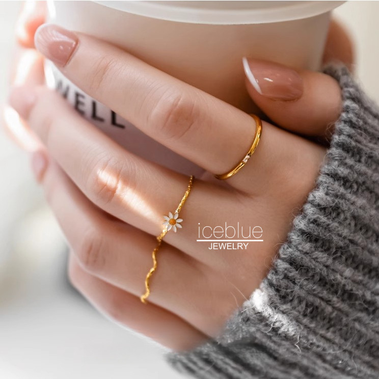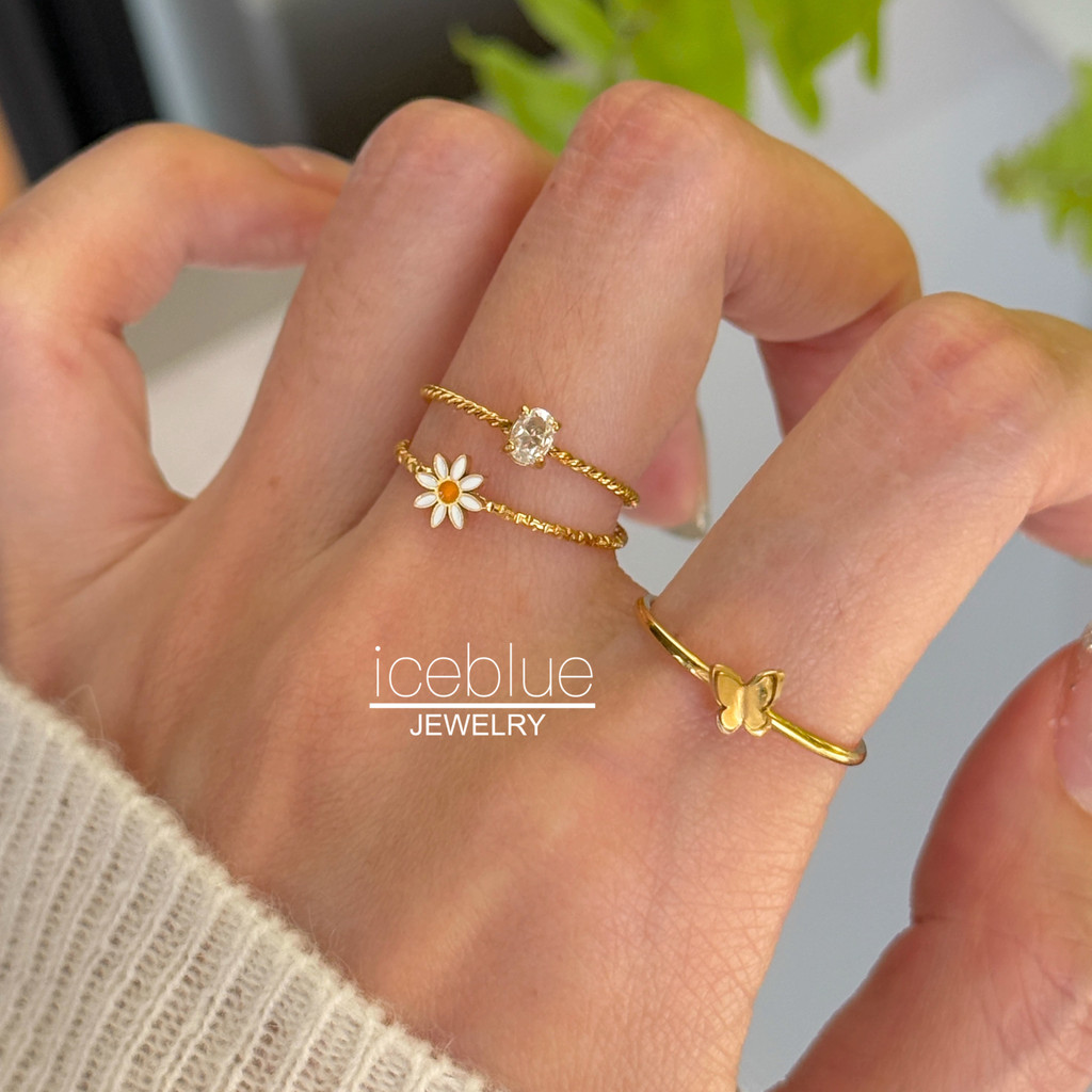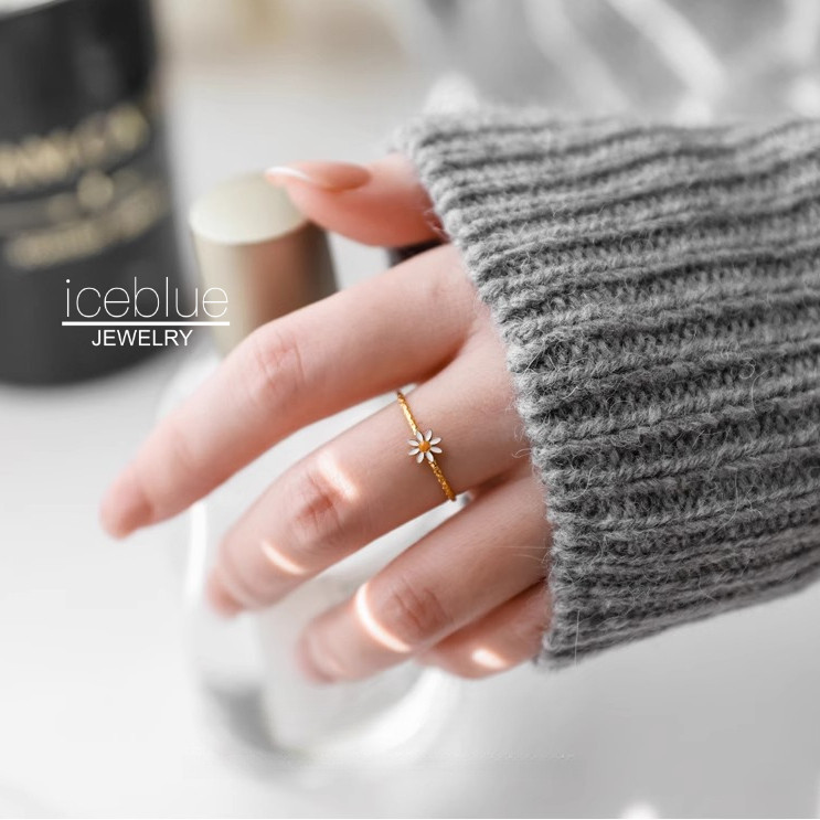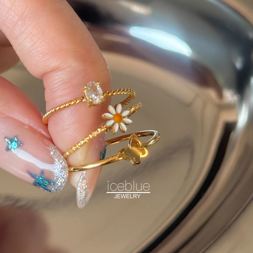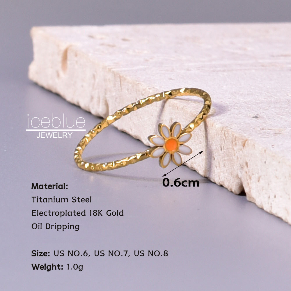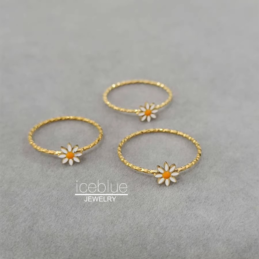 【iceblue】แหวนดอกไม้ 18K Gold Plated Titanium ทนทาน สไตล์เหมาะทุกโอกาสสำหรับผู้หญิง R40