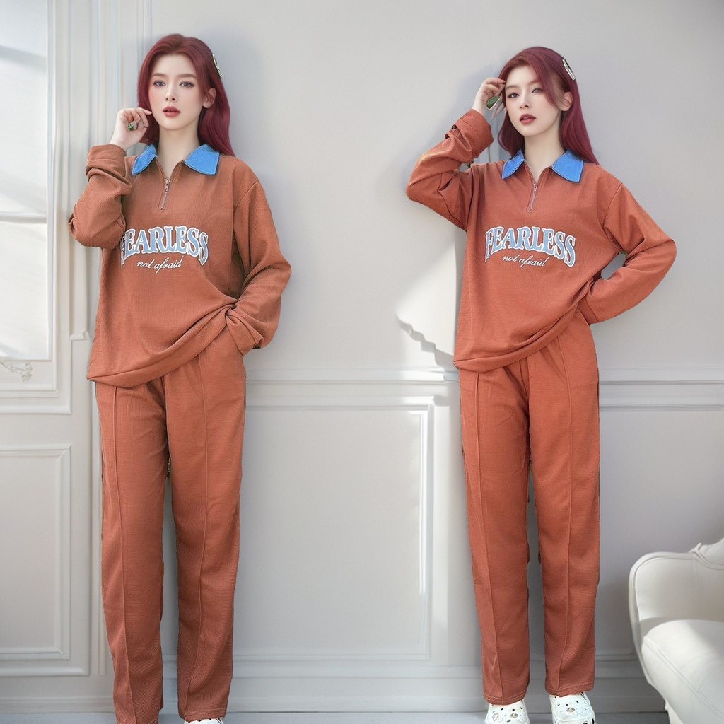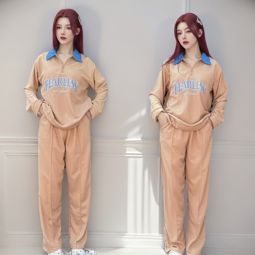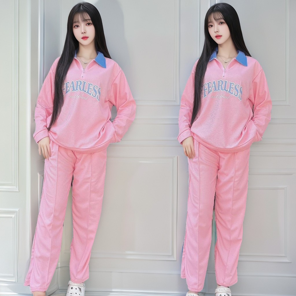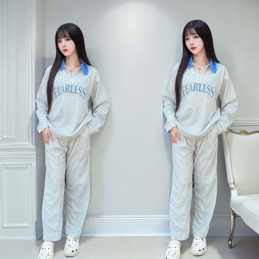 ชุดเซ็ท2ชิ้น S103-2 เสื้อแขนยาวกางเกงขายาวคอปกมีซิป กางเกงมีกระเป๋า มีเชือกรูด (ผ้าวาฟเฟิล) ใส่สบาย
