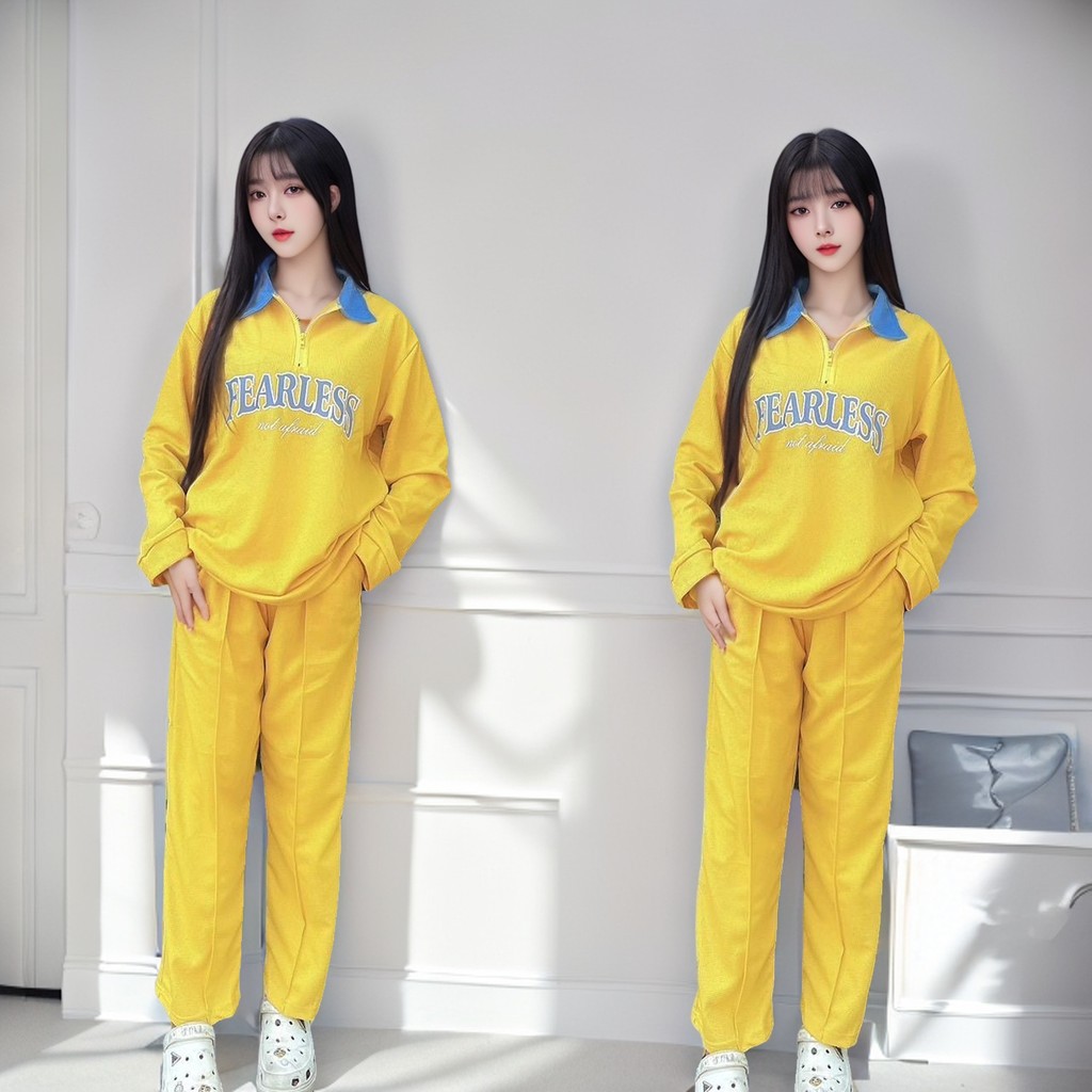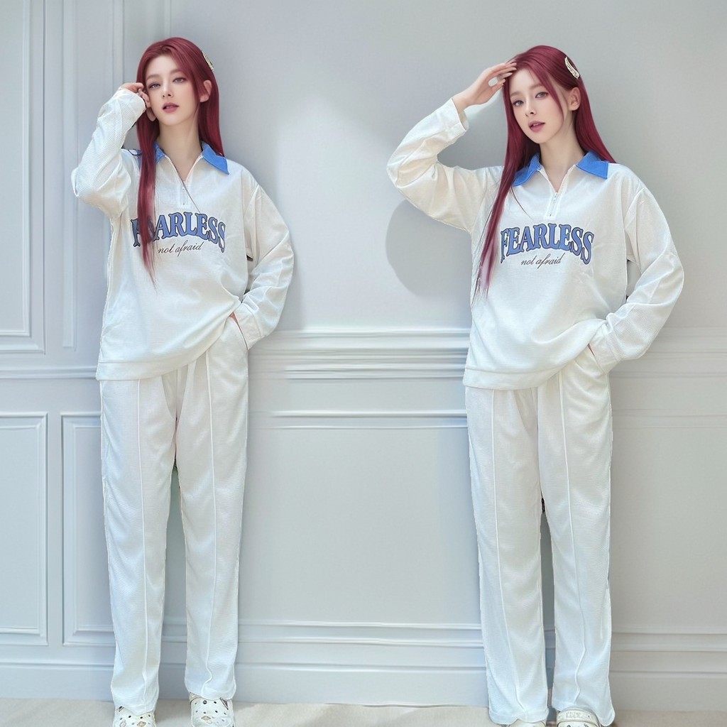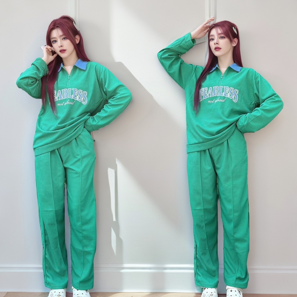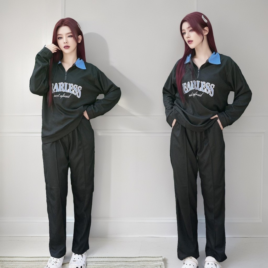 ชุดเซ็ท2ชิ้น S103-2 เสื้อแขนยาวกางเกงขายาวคอปกมีซิป กางเกงมีกระเป๋า มีเชือกรูด (ผ้าวาฟเฟิล) ใส่สบาย