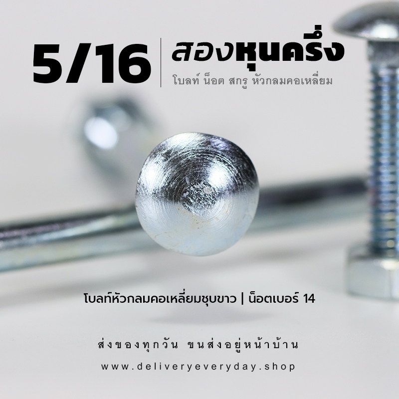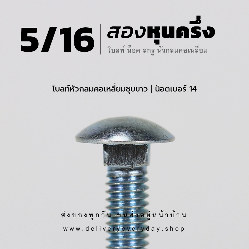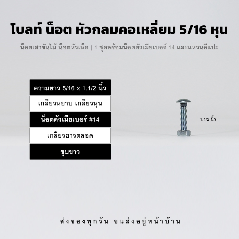 ชุด ประกอบด้วยโบลท์หัวกลมคอเหลี่ยม 5/16 หุน น็อตตัวเมียเบอร์ 14 และแหวนอีแปะ