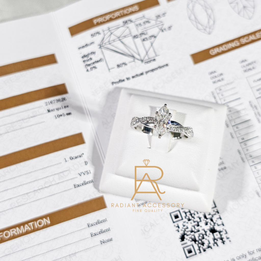 เพชร Moissanite เม็ดชูขนาด 1.0 กะรัต ทรง Marquise cut ขนาด 10x5