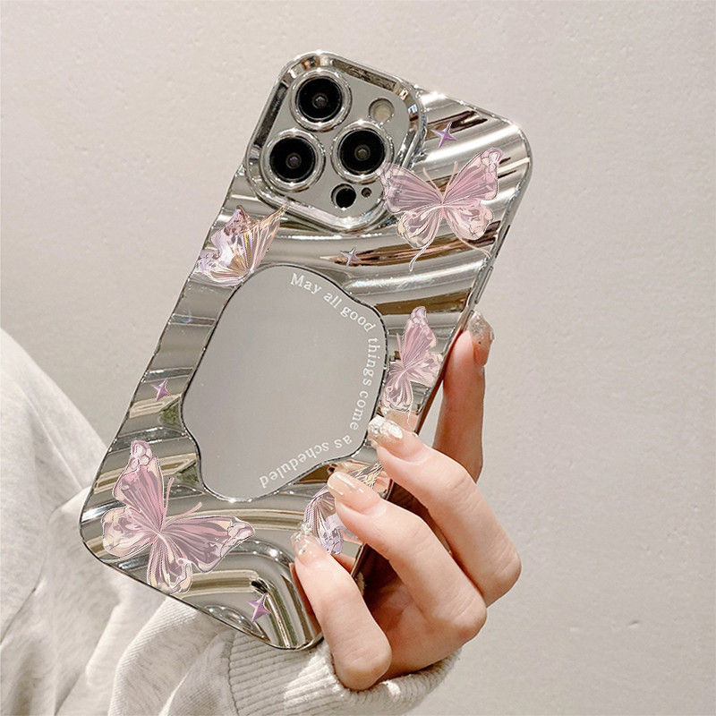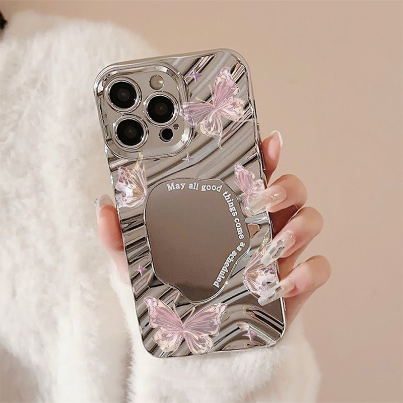 SUN?ส่งจากไทย เคสโทรศัพท์มือถือนิ่ม ผีเสื้อ กันกระแทก สําหรับ iPhone16 15 14 13 12 11 Promax 8Plus X/XSMax ผีเสื้อสีชมพู