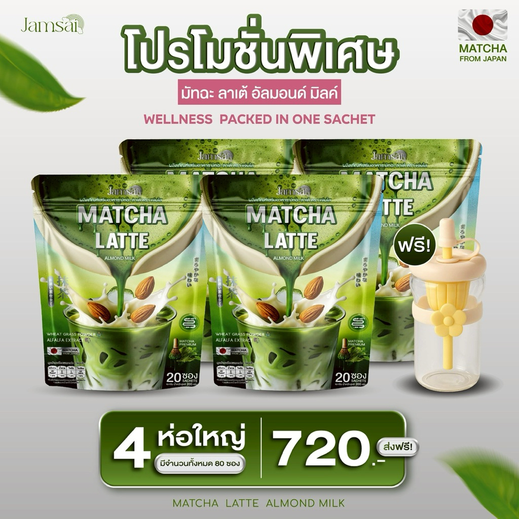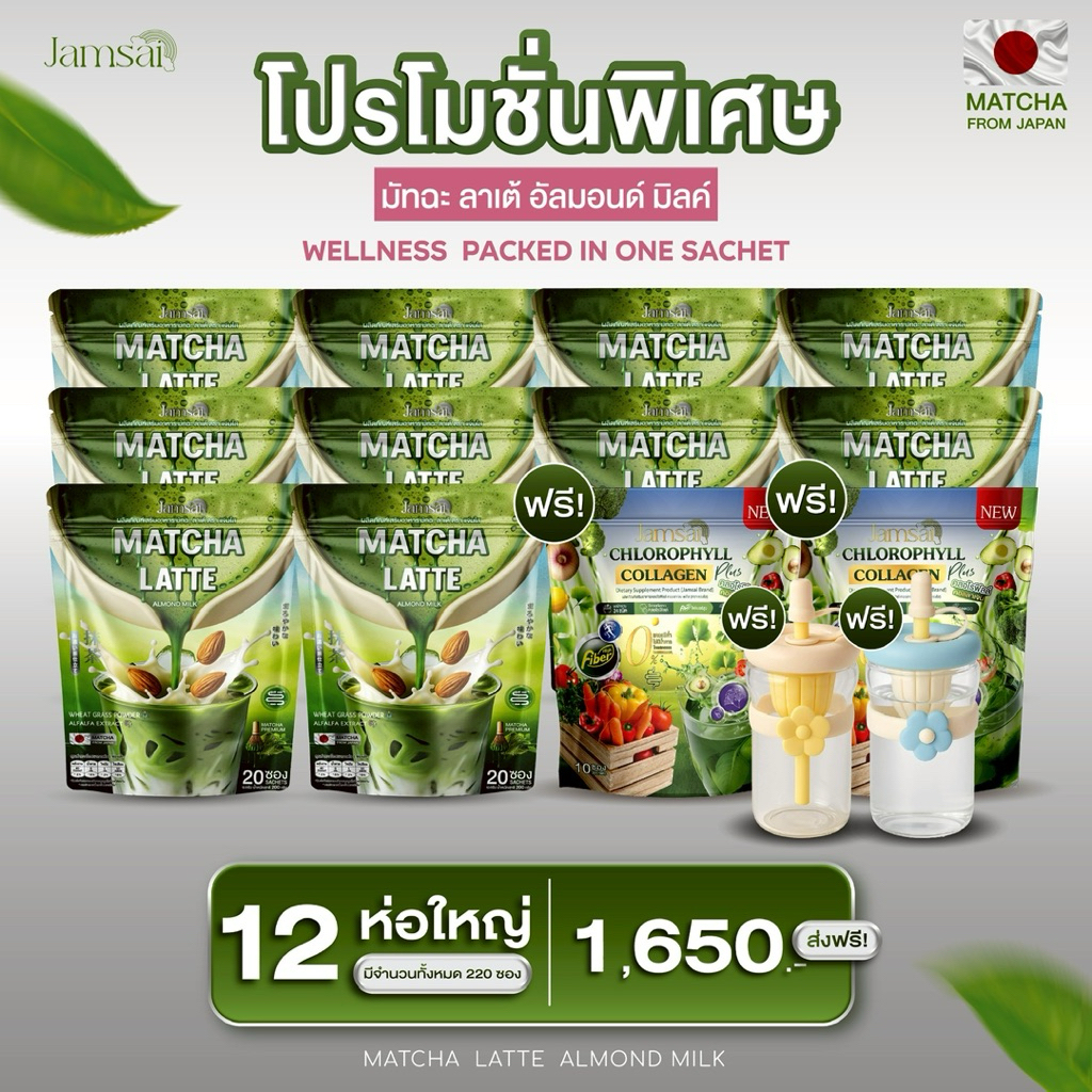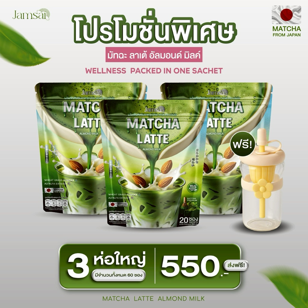 [พร้อมส่งตรงบริษัท] 1แถม2 Jamsai มัจฉะลาเต้ แจ่มใส ชาเขียวพรีเมี่ยม เกรดแท้ญี่ปุ่น ??แถมฟรีแก้วชงชา