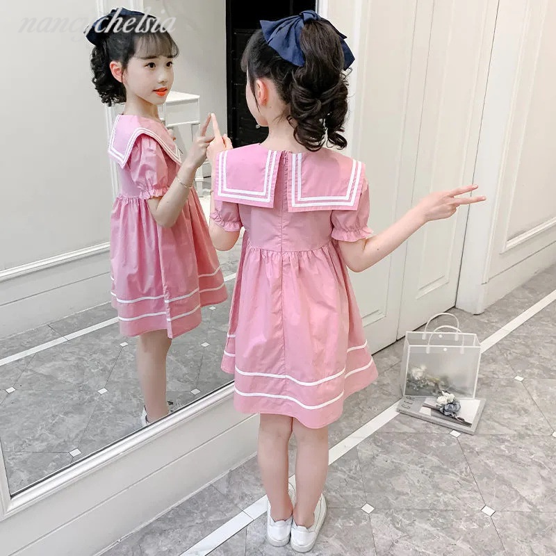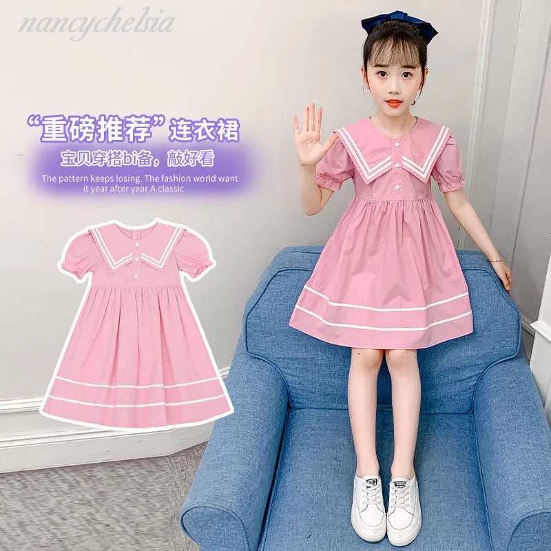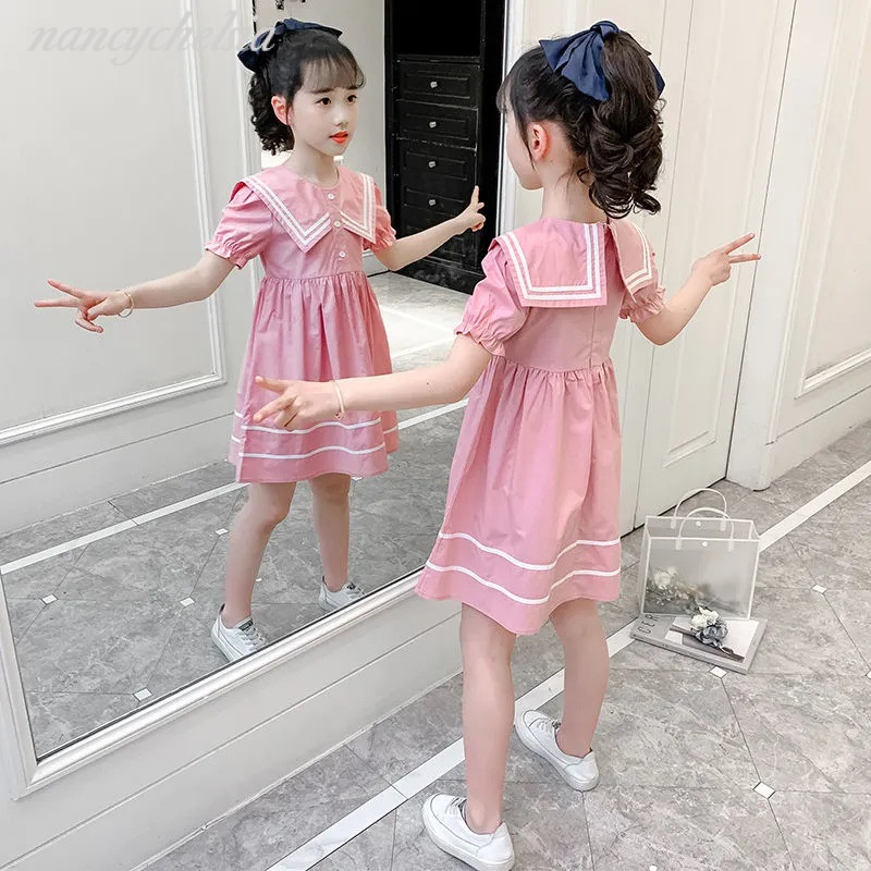เด็กแฟชั่นชุดสีชมพูเด็กฤดูร้อนแขนสั้นกระโปรงเจ้าหญิง 4-12 ปีเด็กวัยหัดเดินเด็กผู้หญิงและวัยรุ่นเสื้อผ้า