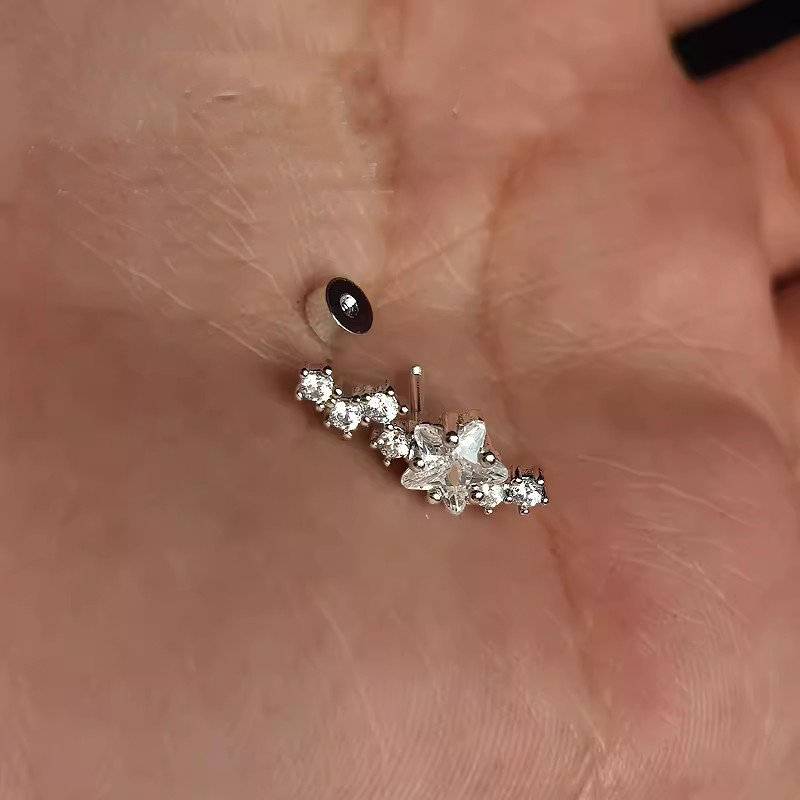 Roselife 1PC S925 เงินคริสตัล Star Screwed ต่างหูสตั๊ดสําหรับผู้หญิงสาวหมั้น Rhinestone หูเครื่องประดับ