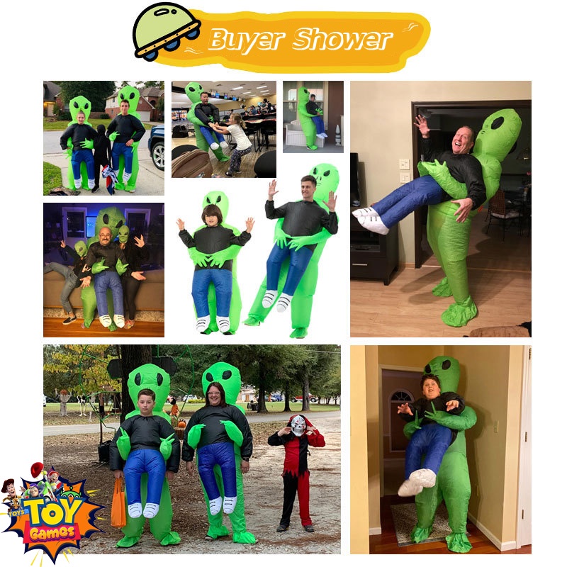 ?COD?ชุดเป่าลมของเอเลี่ยน ผีเสื้อคลุมสีเขียว ชุดประกอบฉาก แต่งตัวประหลาดฮาโลวีนวันคริสต์มาส ตลกดี ขยาย