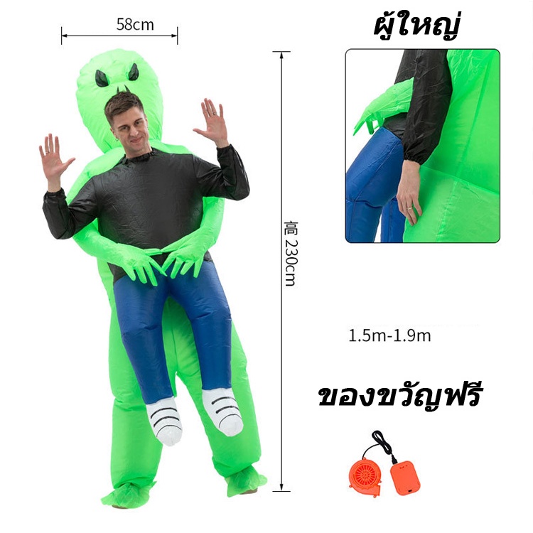 ชุดมาสคอต ชุดมาสคอตเป่าลม ชุดแฟนซีเป่าลม รุ่นมนุษย์ต่างดาวอุ้ม ชุดเอเลี่ยนเป่าลม พร้อมพัดลม