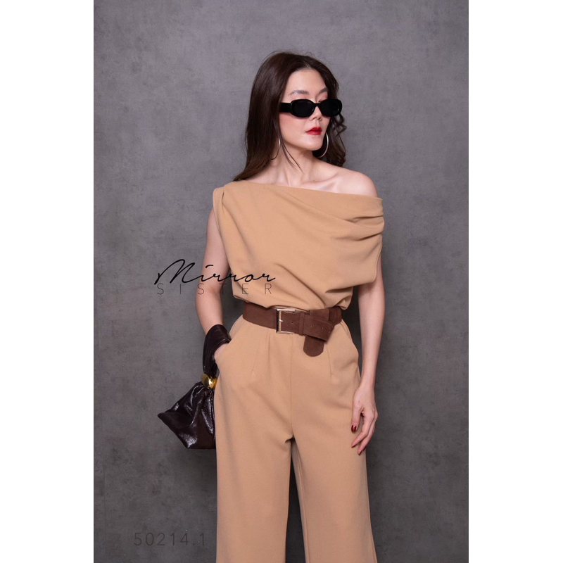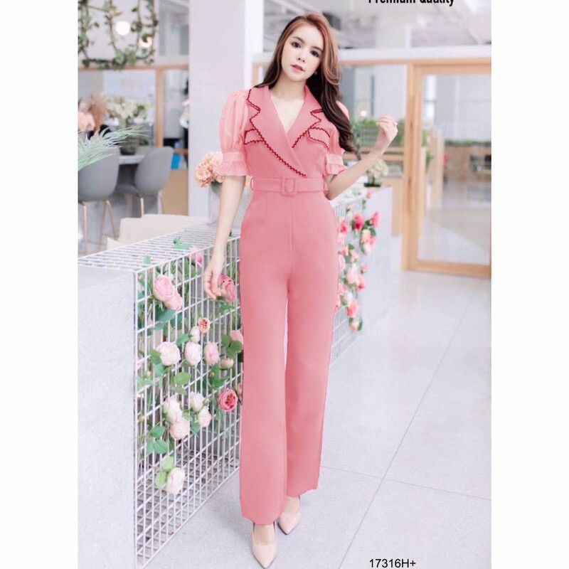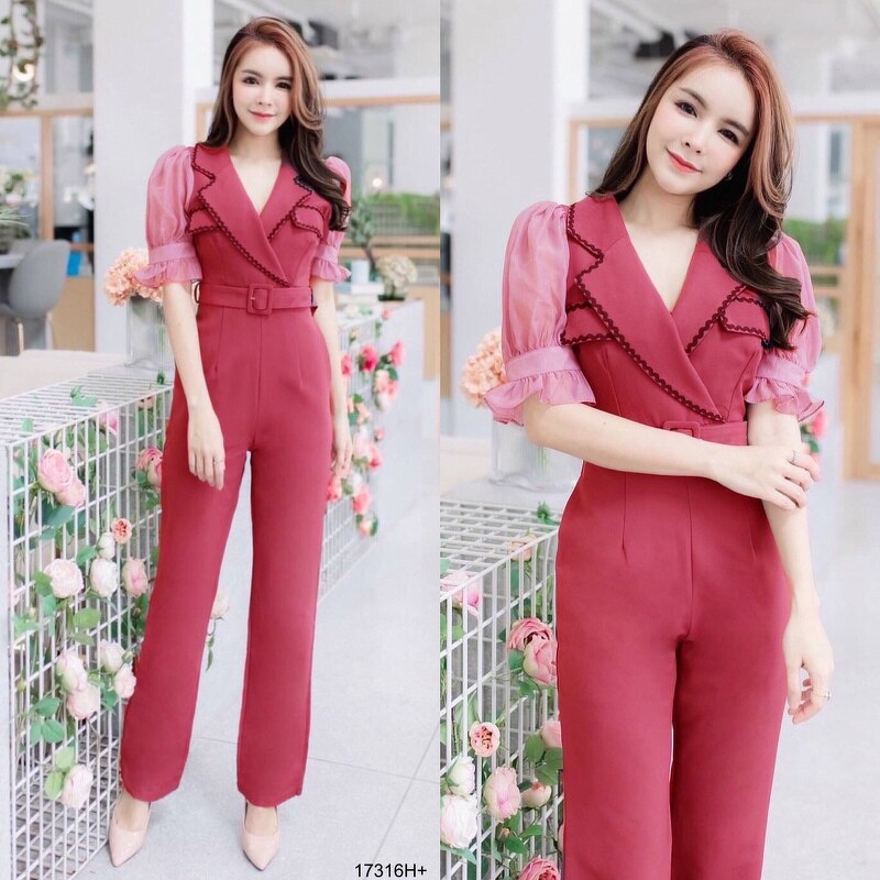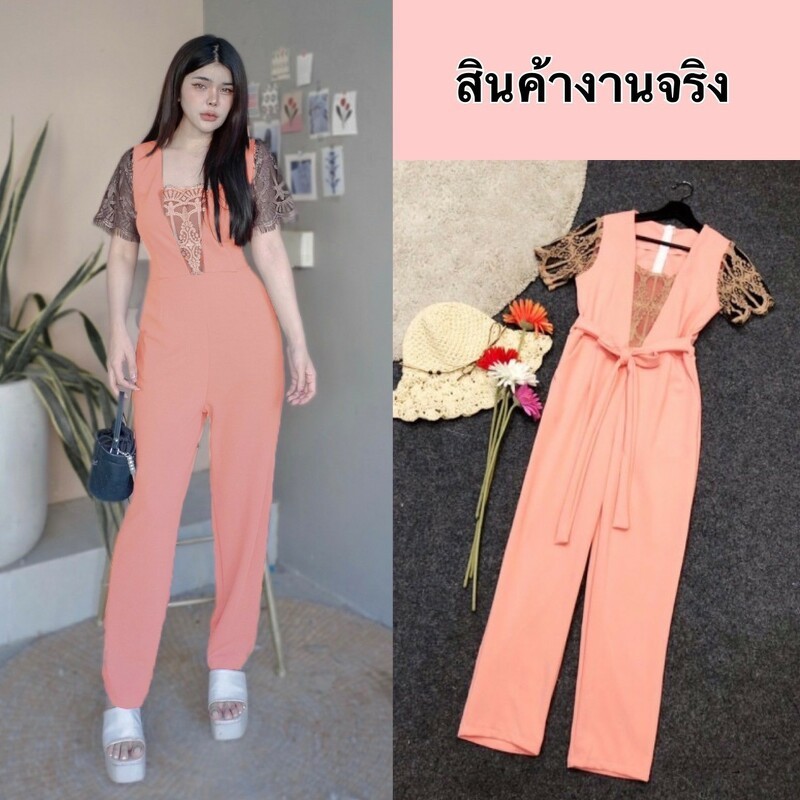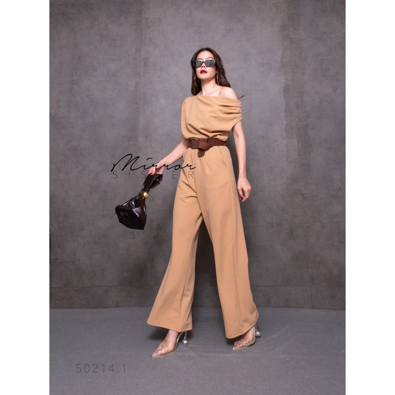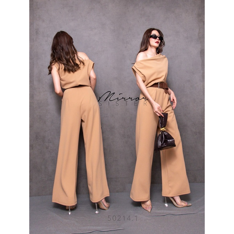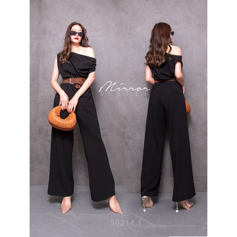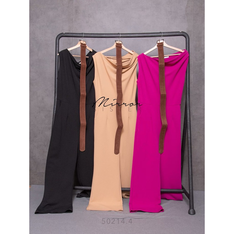 BT 08-0982 จั้มสูทขายาวแขนยาวคอกลมเว้าเฉียงช่วงอกและเว้าช่วงเอว