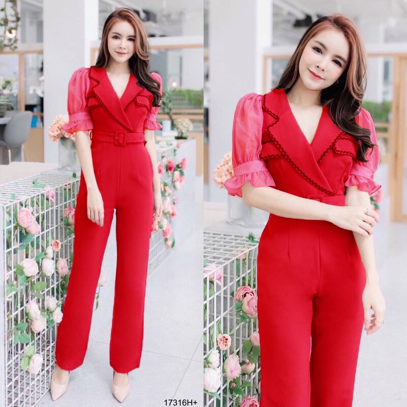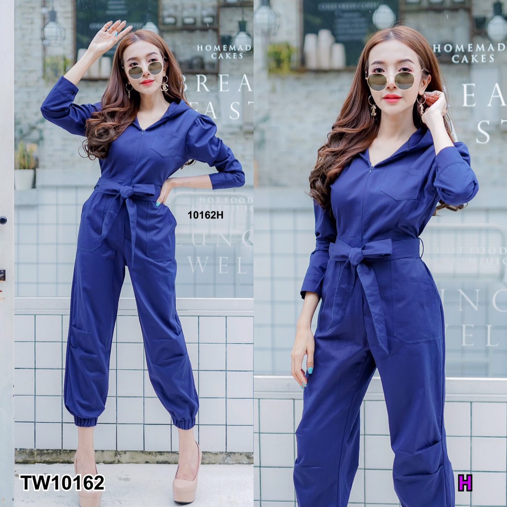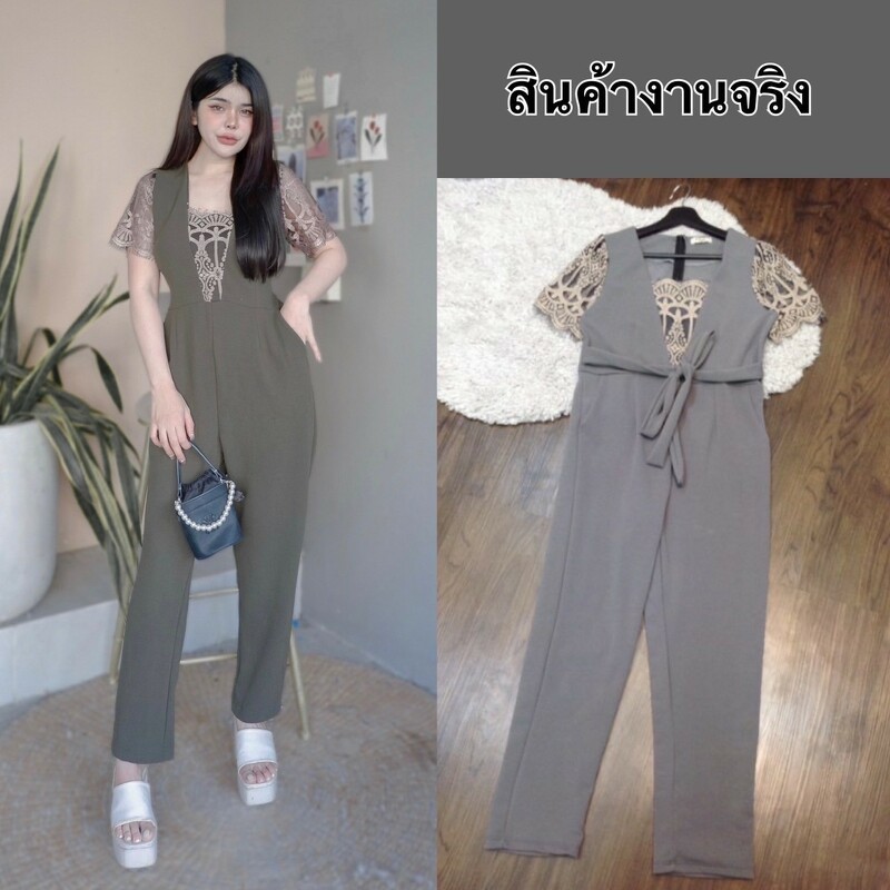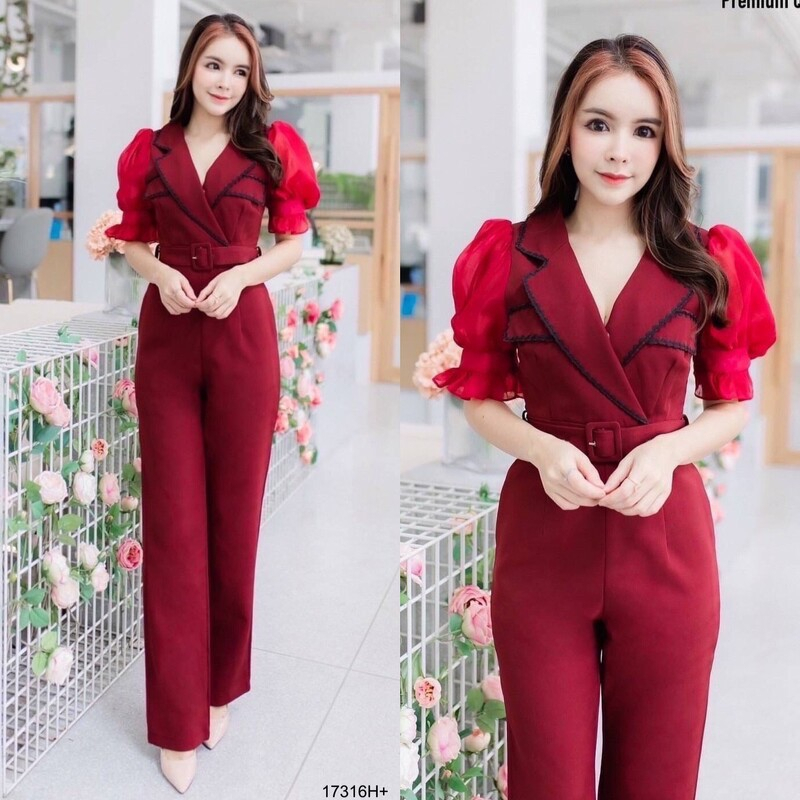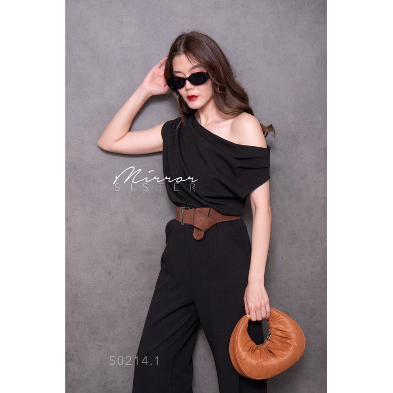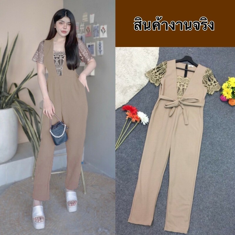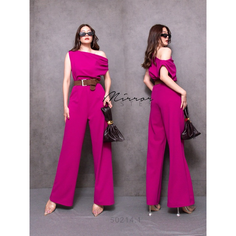 BT 08-0982 จั้มสูทขายาวแขนยาวคอกลมเว้าเฉียงช่วงอกและเว้าช่วงเอว