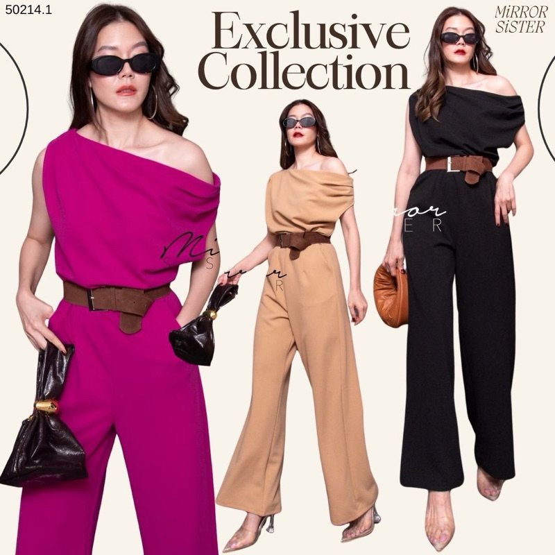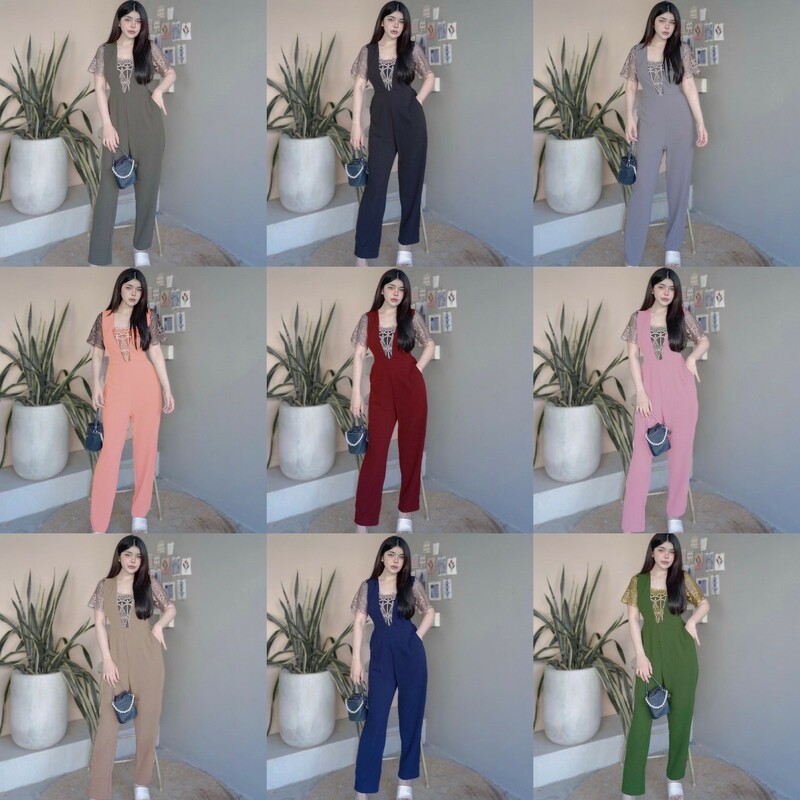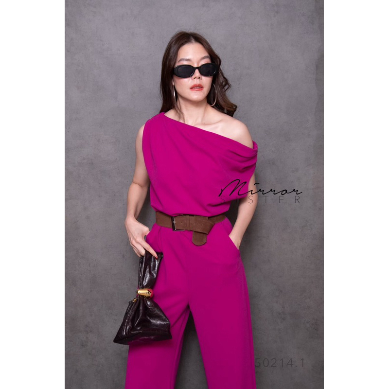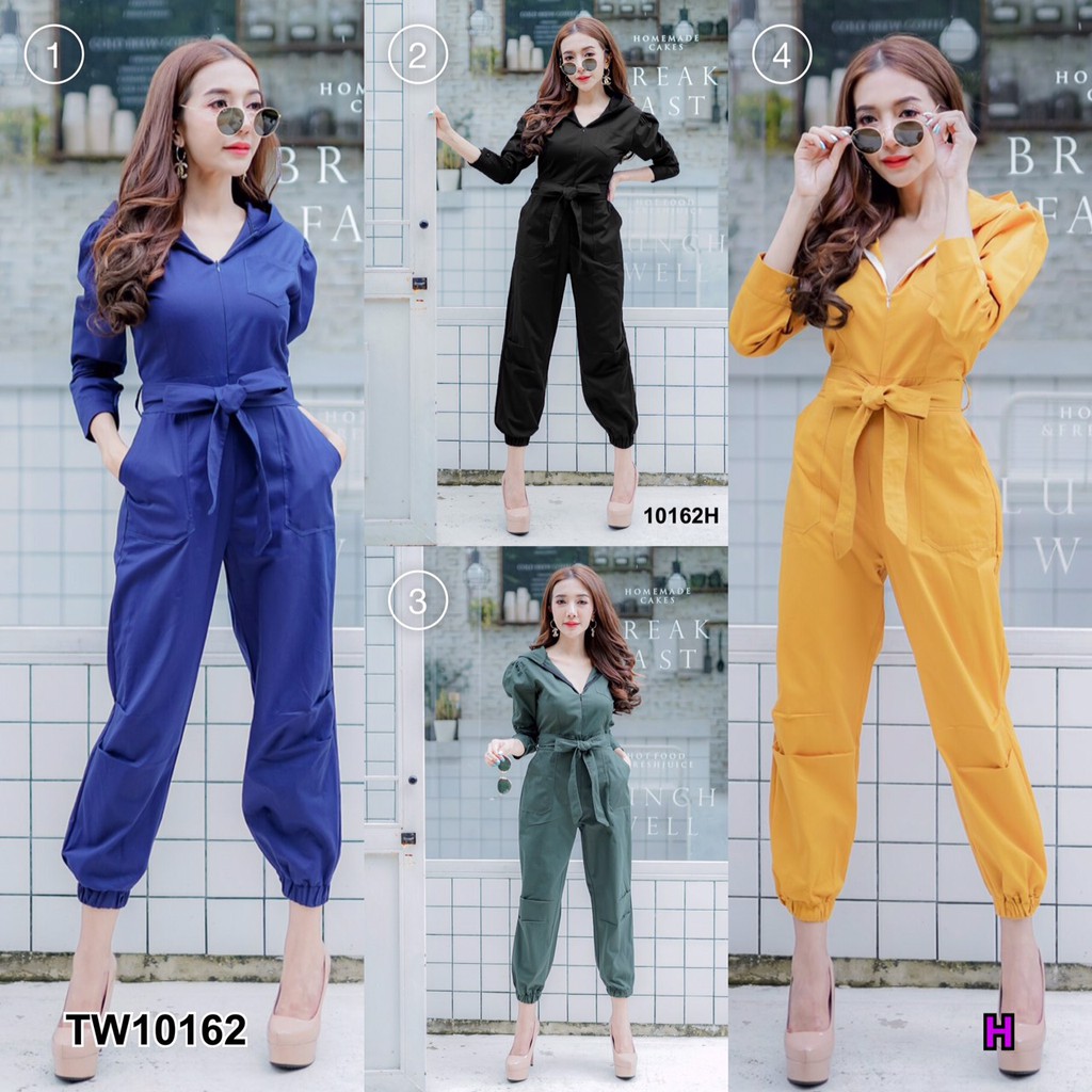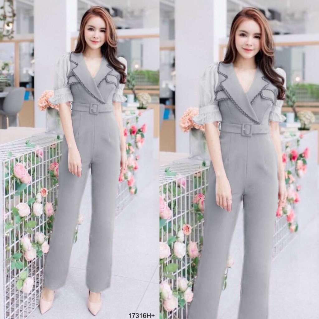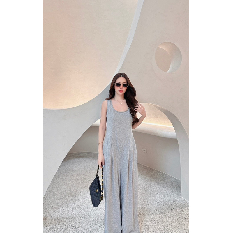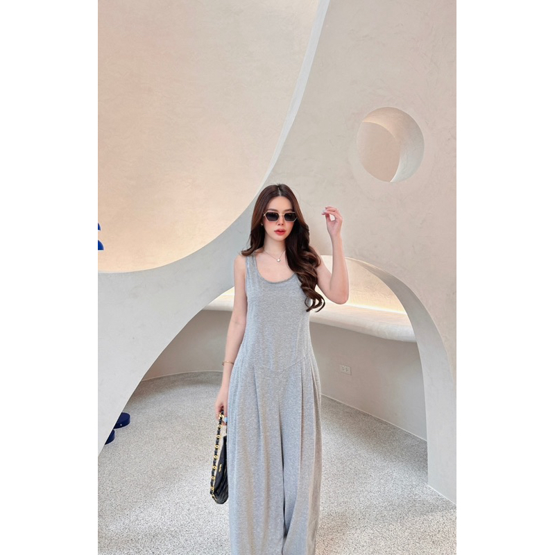 BT 08-0982 จั้มสูทขายาวแขนยาวคอกลมเว้าเฉียงช่วงอกและเว้าช่วงเอว