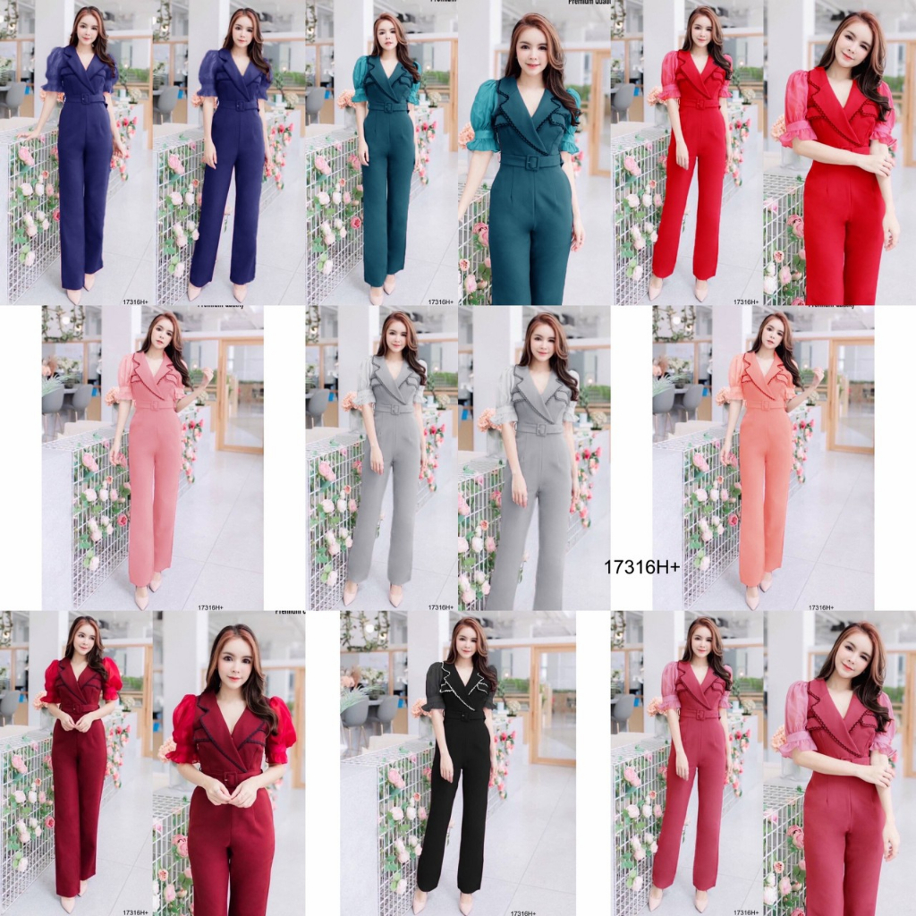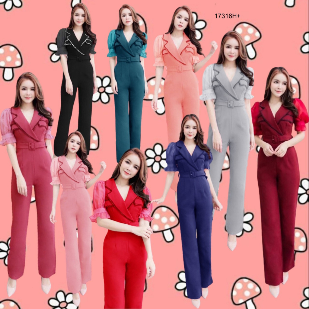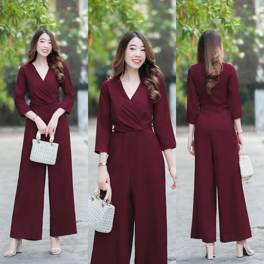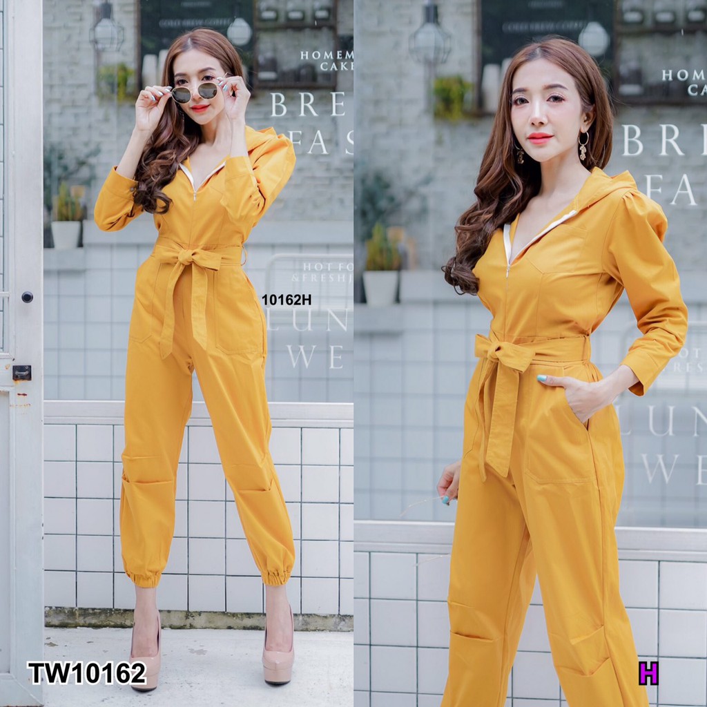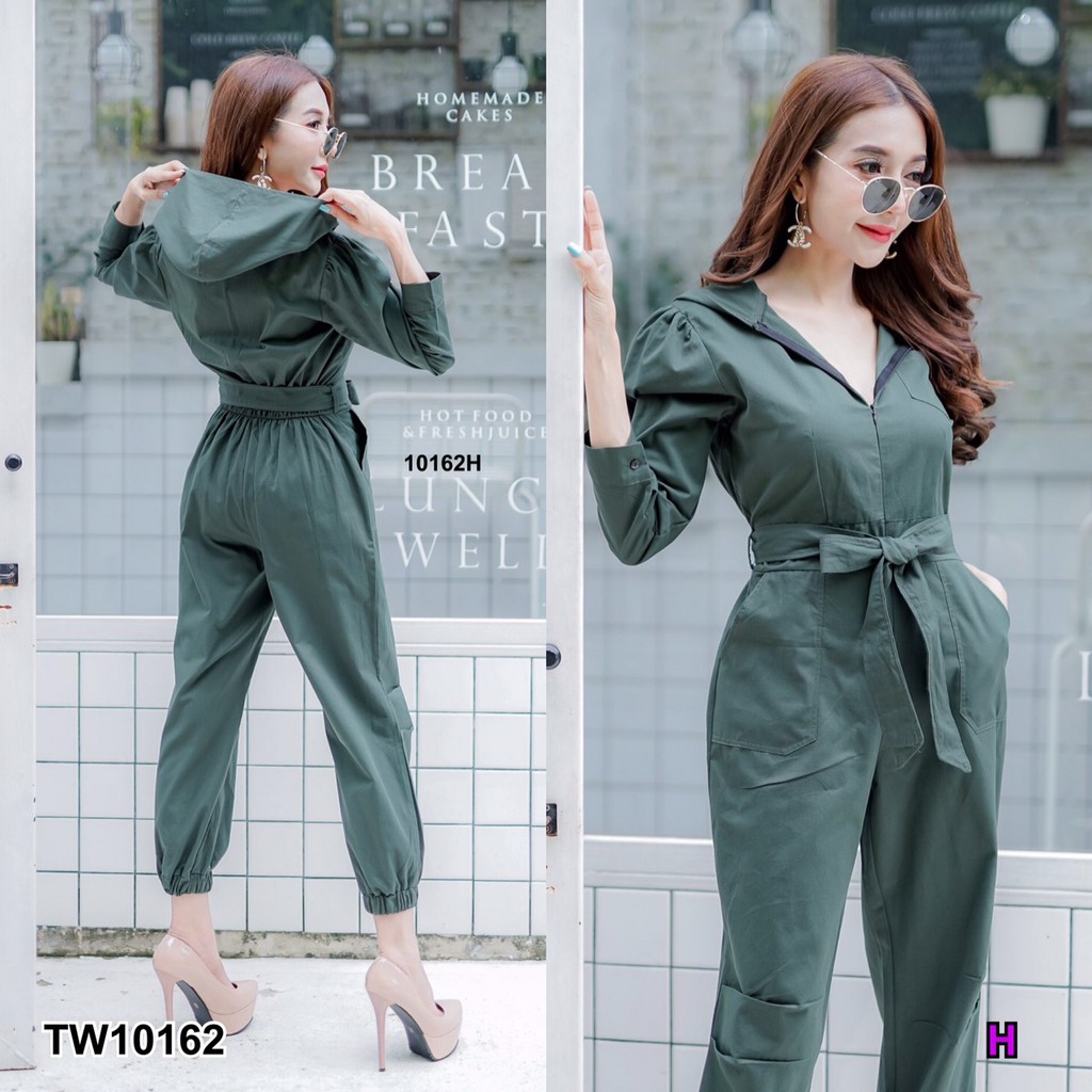 BT 08-0982 จั้มสูทขายาวแขนยาวคอกลมเว้าเฉียงช่วงอกและเว้าช่วงเอว