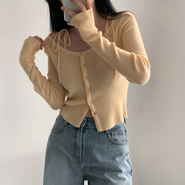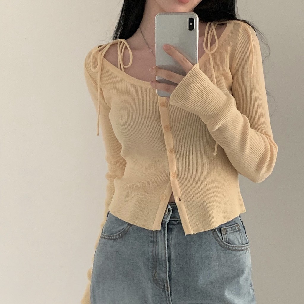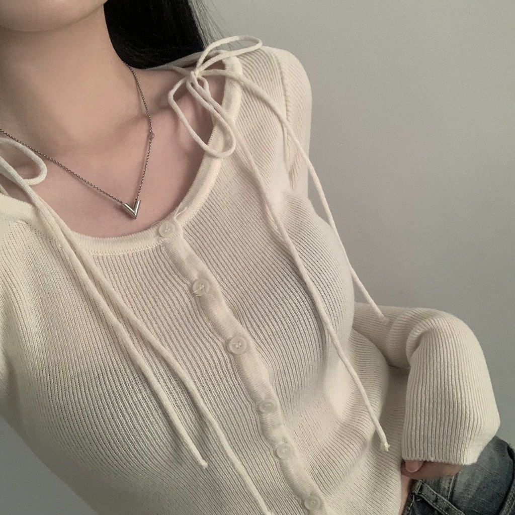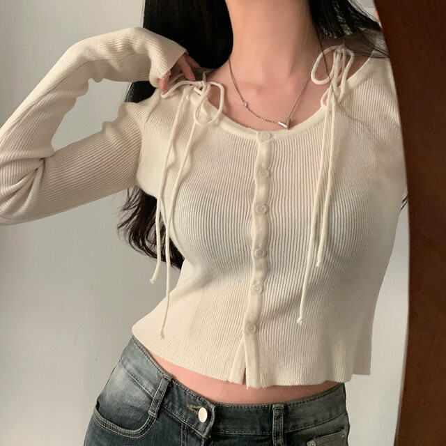 ซูซี ฝรั่งเศสย้อนยุคฤดูใบไม้ร่วงใหม่ลูกไม้ขึ้นเชือกแขวนคอกระดุมแถวเดียวแขนยาวเสื้อถักเสื้อกันหนาวผู้หญิง 240828