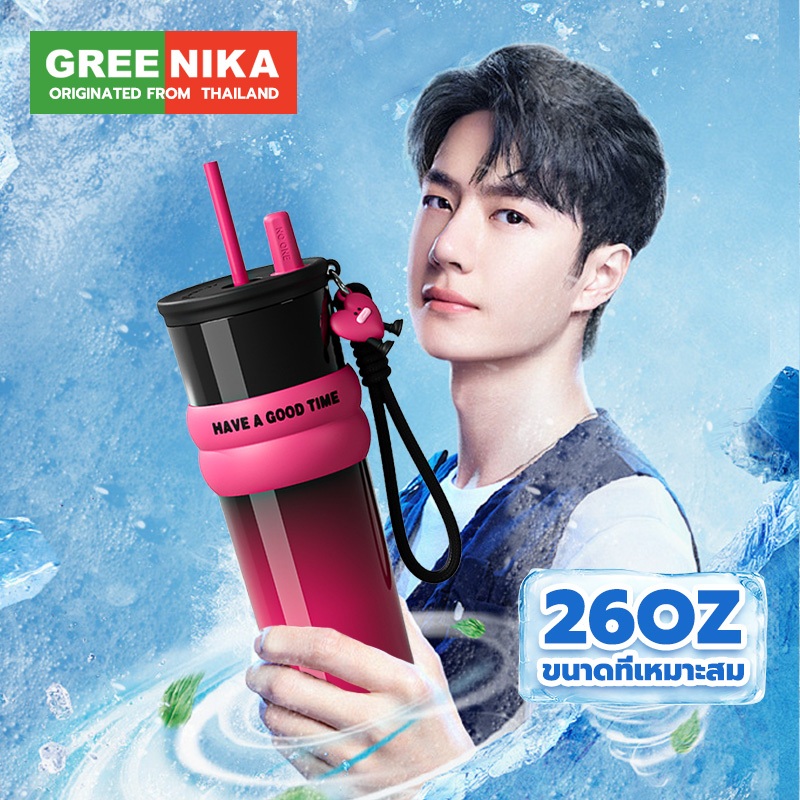 GREENIKA แก้วเก็บเย็นสแตนเลส 720ml 26oz แก้วเยติ ถ้วยสแตนเลส พกพาได้ แก้วกาแฟ หลอดฟรี ฉนวนกันความร้อน ความจุขนาดใหญ่ 316