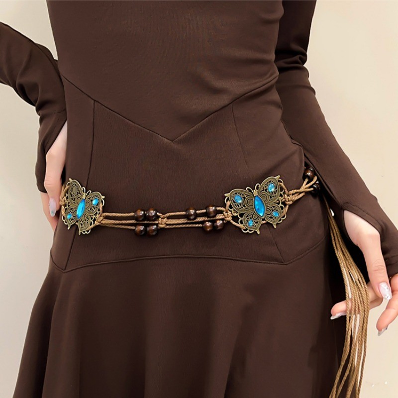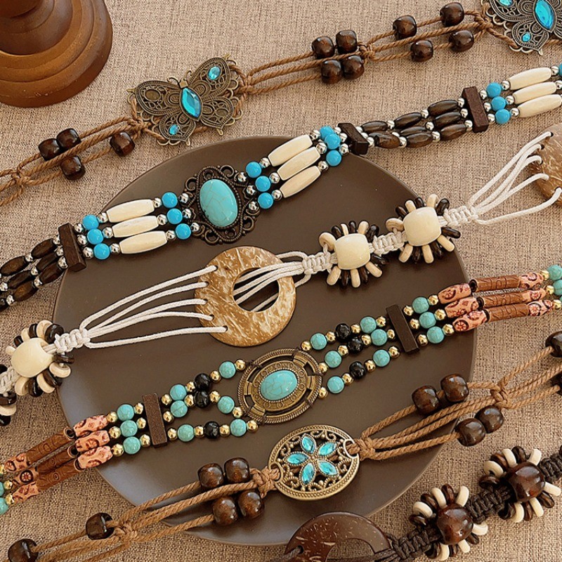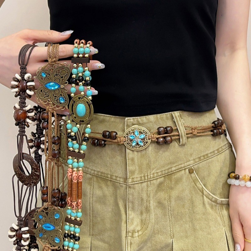 โบฮีเมียนโลหะเอวโซ่สไตล์ชาติพันธุ์กระโปรงย้อนยุคเข็มขัด