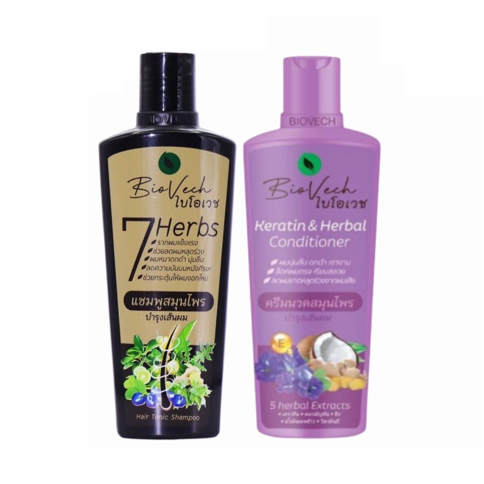 (ขวด) BioVech ไบโอเวช แชมพูสมุนไพร / ครีมนวดสมุนไพร 225ml.