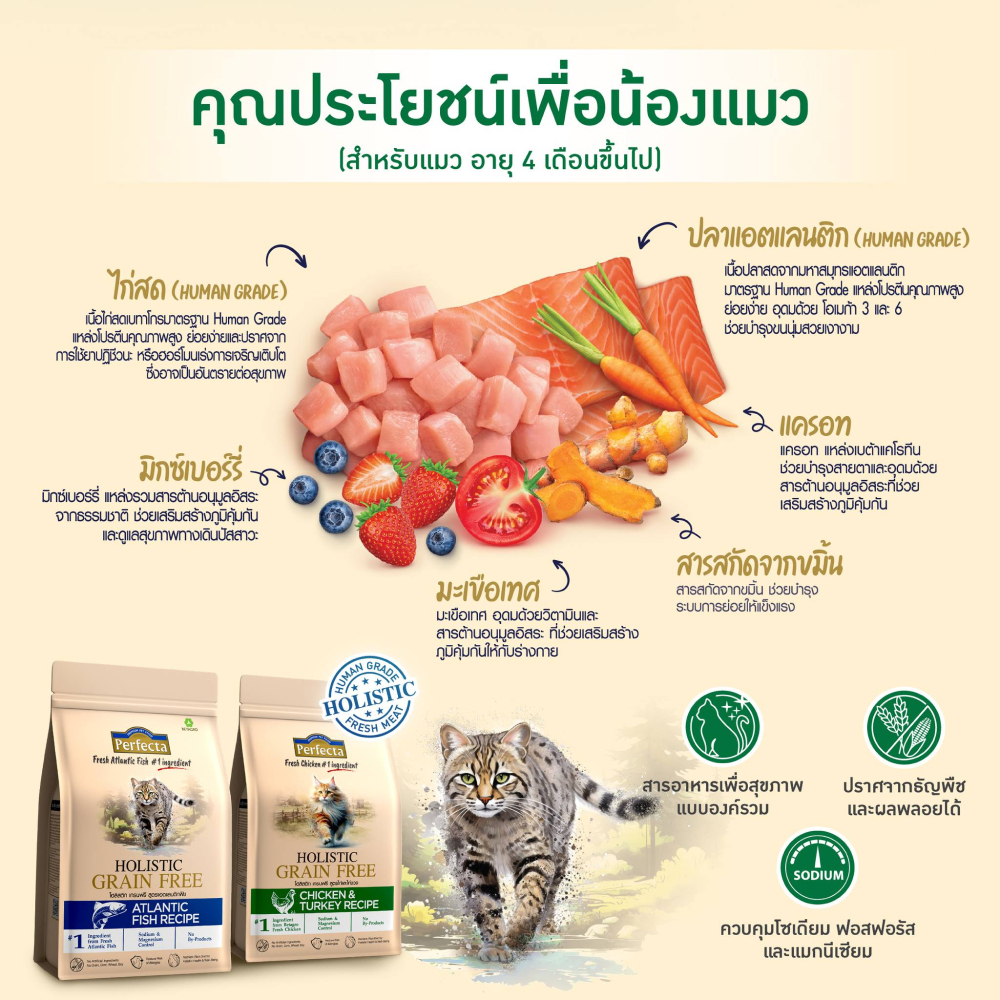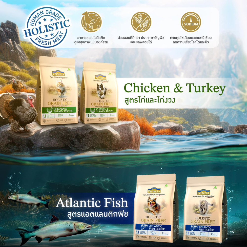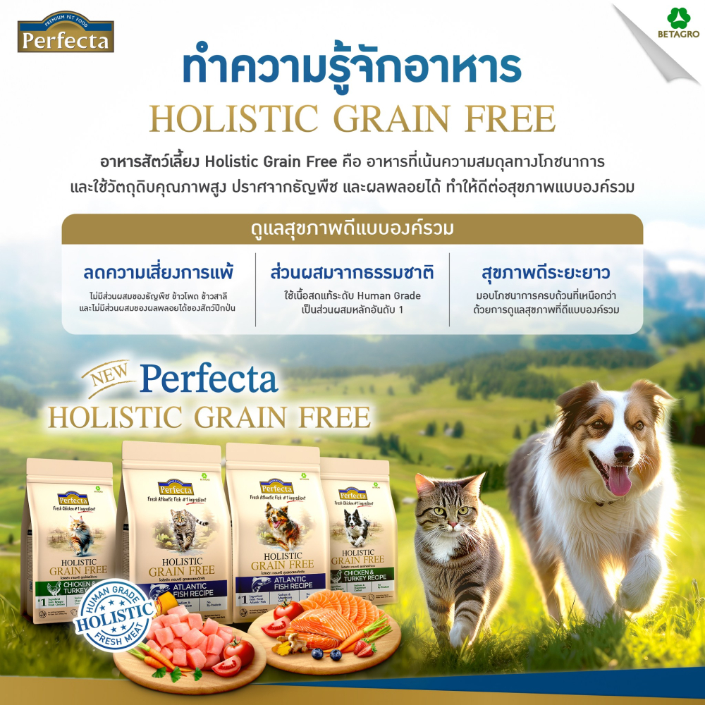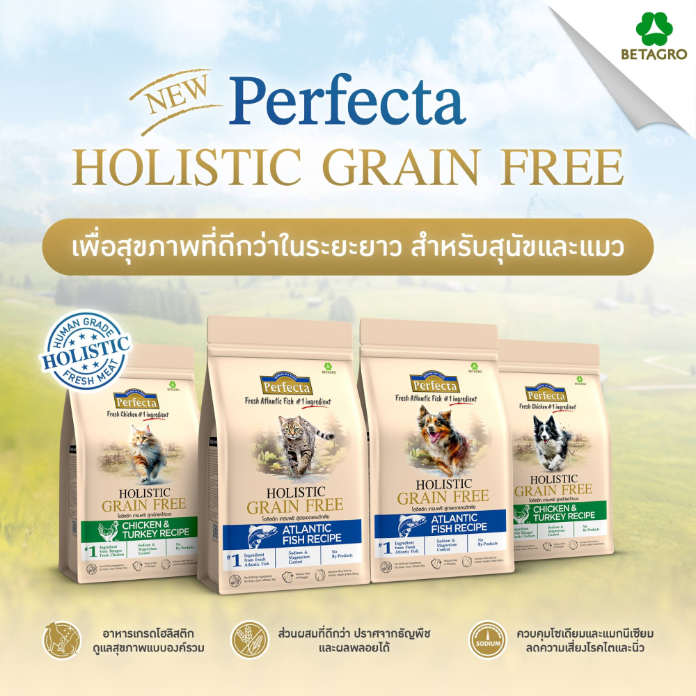 Perfecta Holistic Grain Free อาหารแมว แมวโต ลูกแมว โฮลิสติก เกรนฟรี รส ไก่ ไก่งวง ปลา ขนาด 0.8 / 1kg