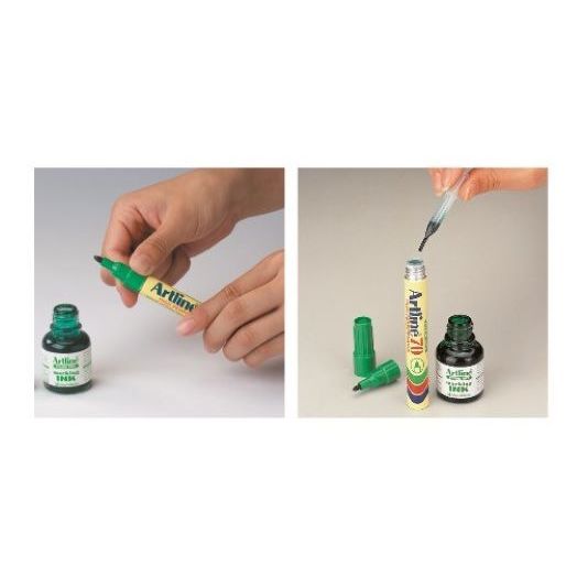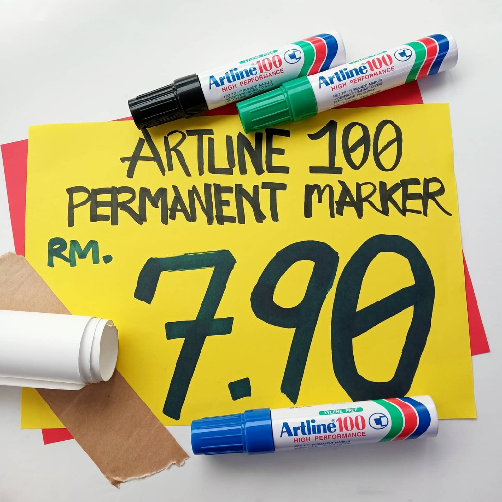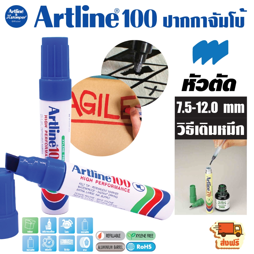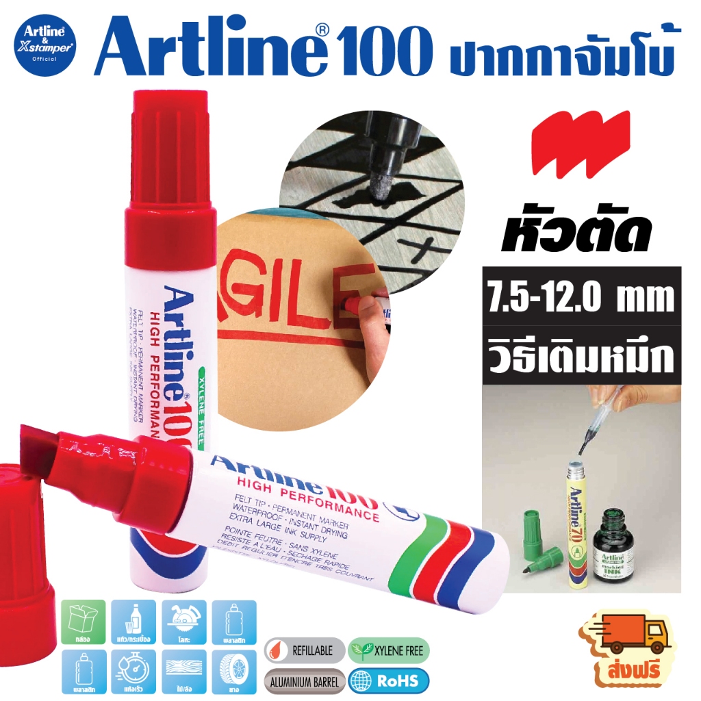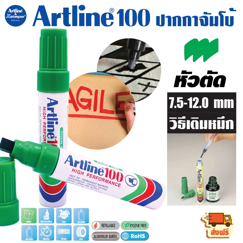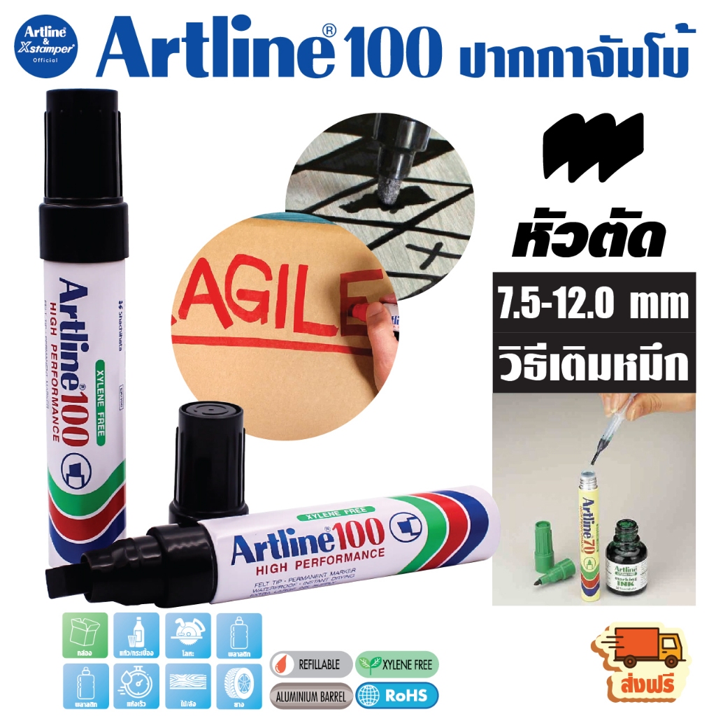 Artline ปากกาเคมี EK-100 หัวตัด ชุด 2 ด้าม มาร์คเกอร์ เมจิกหัวใหญ่ เขียนป้าย เติมหมึกได้