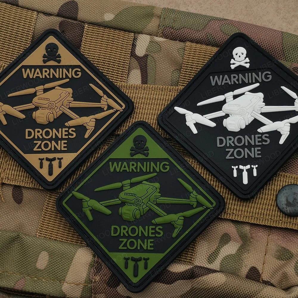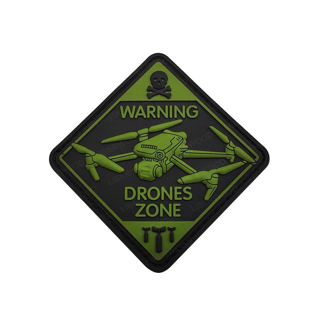 Warning DRONES ZONE ยุทธวิธี Patch Unmanned Aerial รถ UAV 3D PVC Hook Loop เรืองแสง Badge หมวกกันน็อคชุดกระเป๋าเป้สะพายหลังสัญลักษณ์