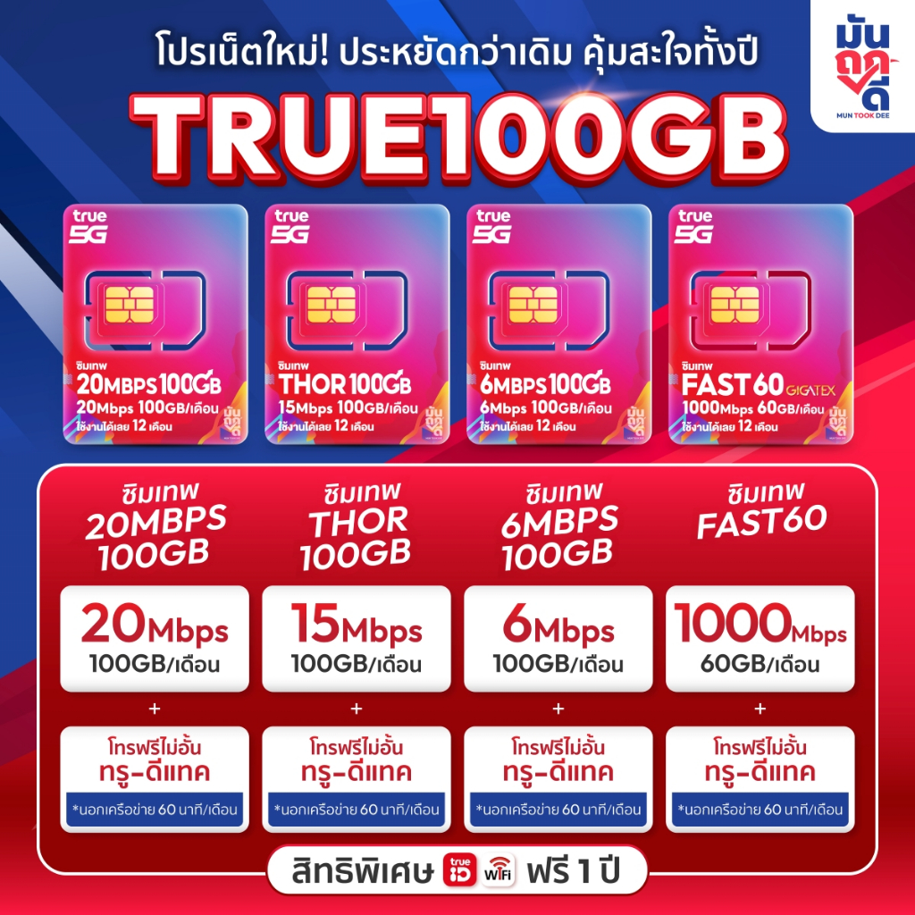 [ เลือกเบอร์ SET1 ] ซิมเทพทรู 20MBPS 100GB เน็ต20mbps ซิมเน็ตรายปี ซิมเทพรายปี ซิม True โทรฟรีทุกค่าย 720นาที
