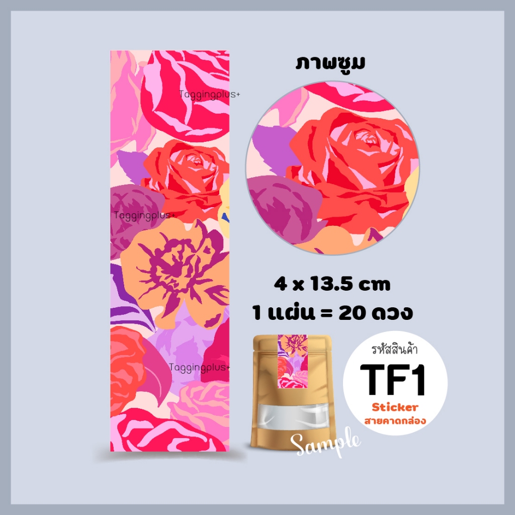 สติกเกอร์สายคาดขนาดใหญ่ ขนาด 4×13.5 cm. 20 ดวง, สายคาดกล่อง, สติกเกอร์กระดาษเนื้อมันเงา หมึกกันน้ำ
