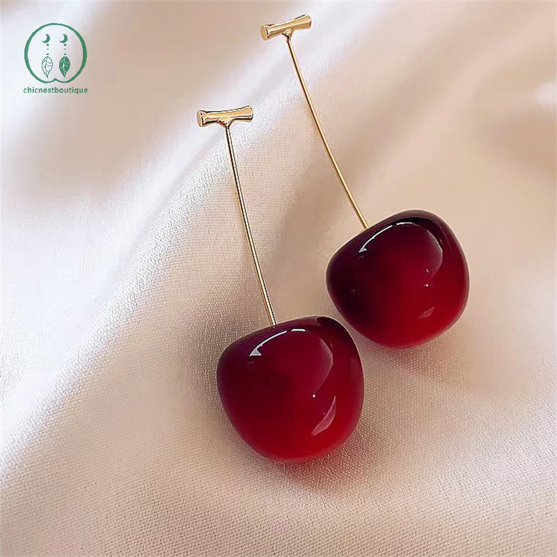[ชาวเก๋ไก๋] น่ารักเชอร์รี่ผลไม้วางต่างหูห้อยแฟชั่นหวานเชอร์รี่จี้ต่างหูสําหรับผู้หญิงงานแต่งงานเครื่องประดับอุปกรณ์บูติก