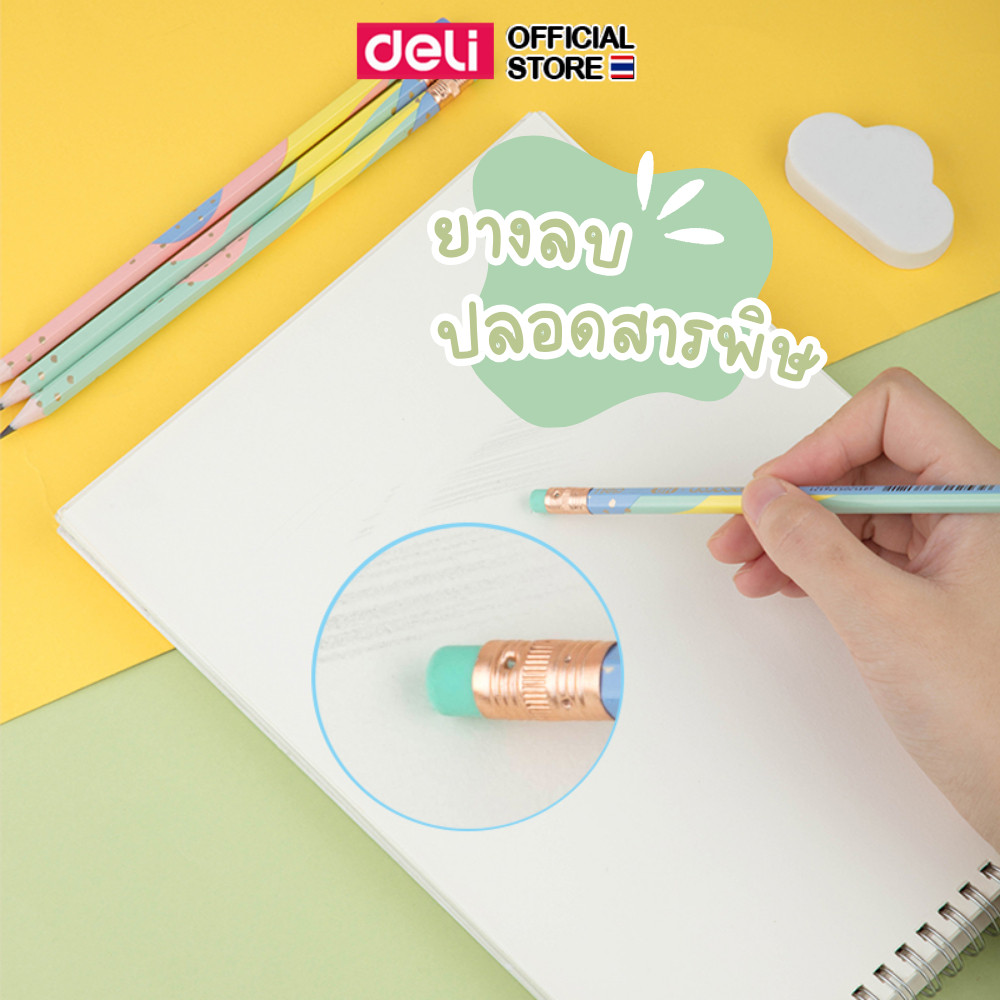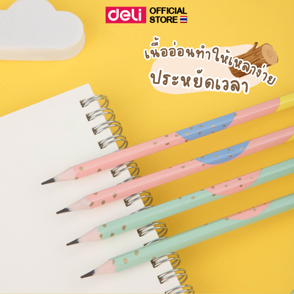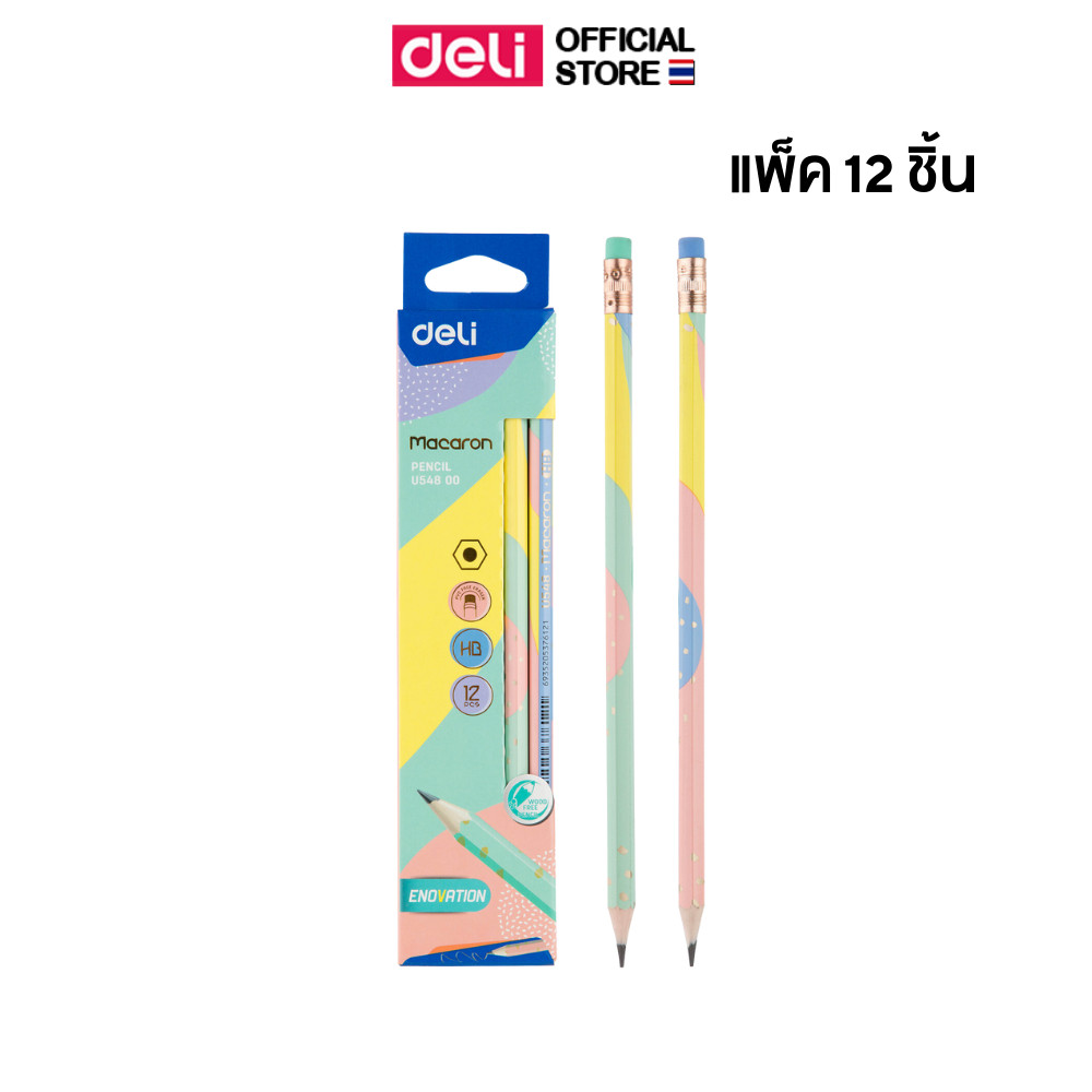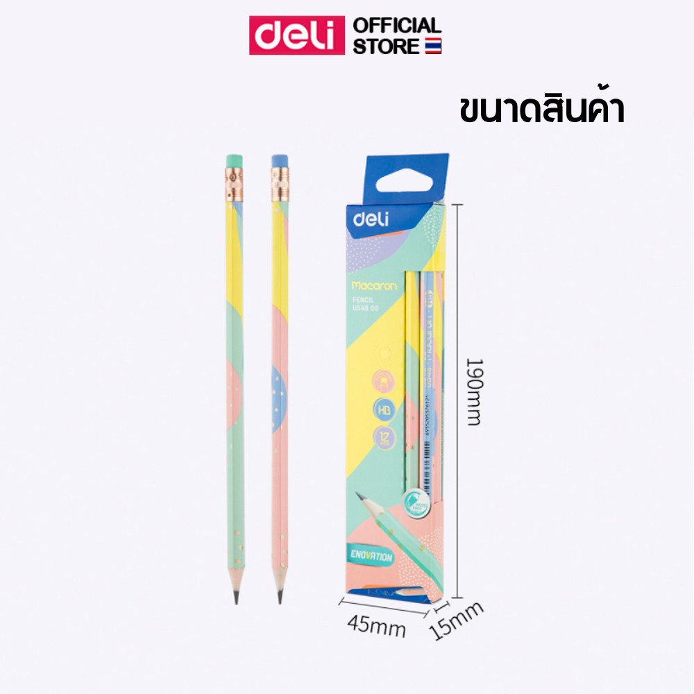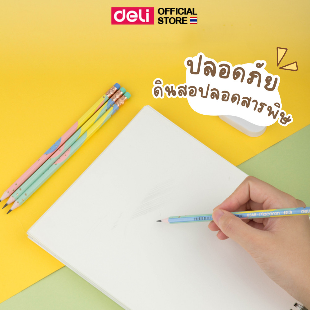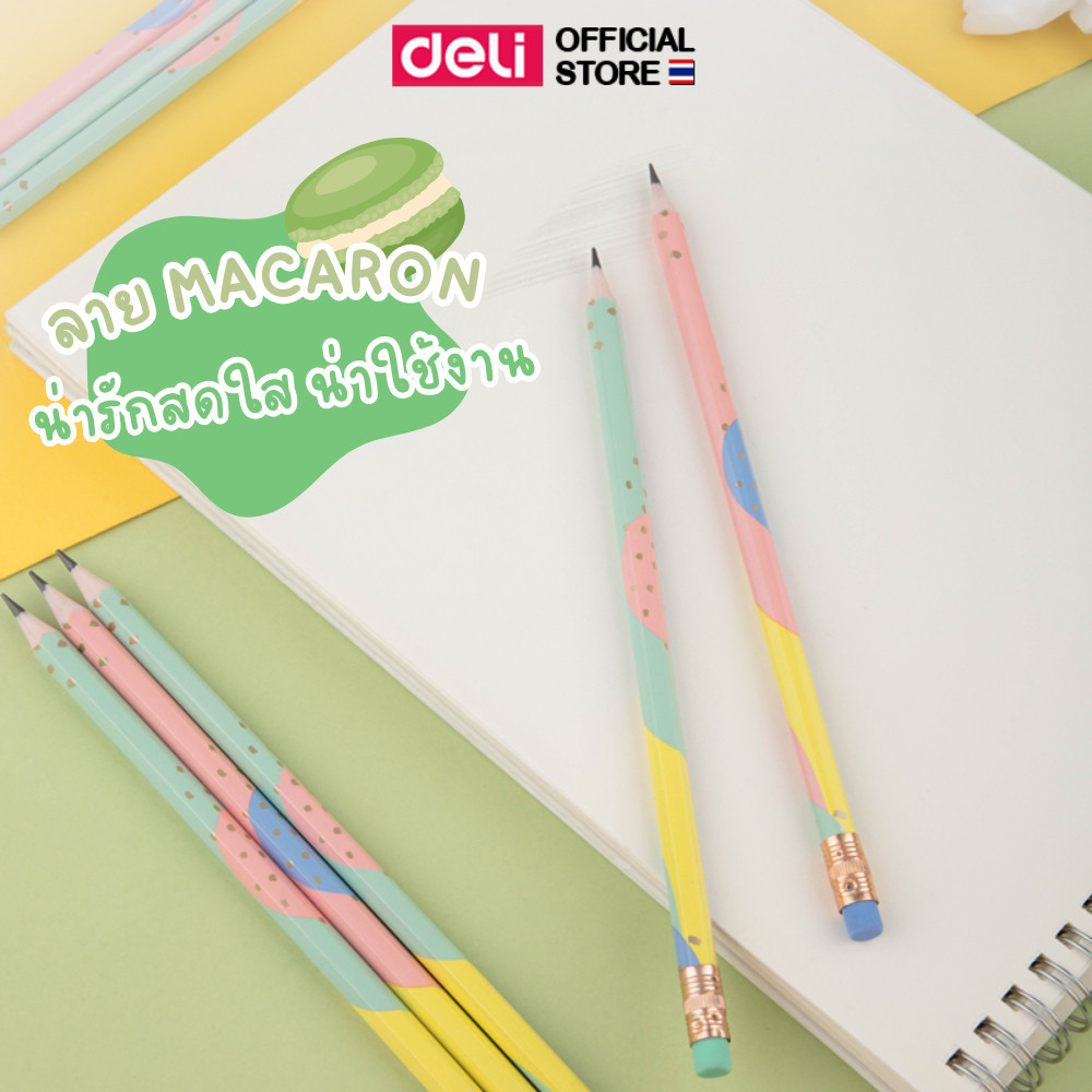 Pencil HB with eraser ดินสอไม้ลาย Macaron ขนาด HB ยี่ห้อ Deli รุ่น U54800
