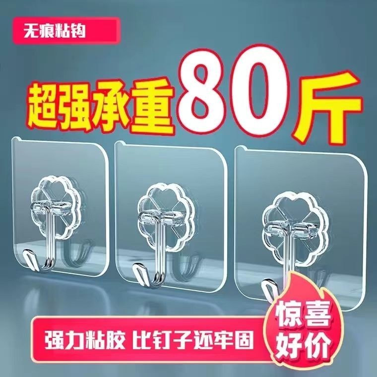 不锈钢挂钩强力粘钩免打孔挂钩一次性透明挂钩贴强力粘胶无痕自贴Stainless steel hook, strong adhesive hook, no punching hook, one20250211