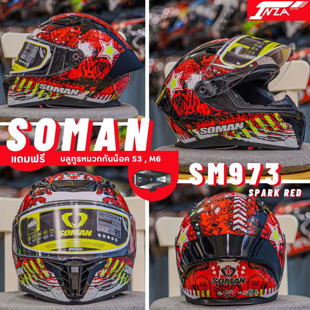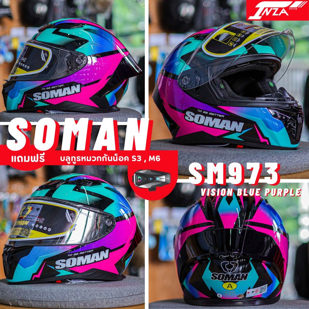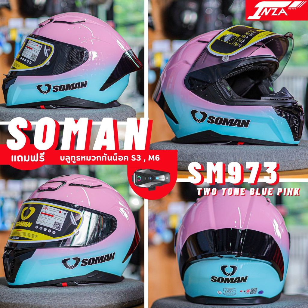 (เซ็ท+บลูทูธS3) SOMAN รุ่น SM973 หมวกกันน็อคเต็มใบ สปอร์ต น้ำหนักเบา รุ่นใหม่ล่าสุด 2025