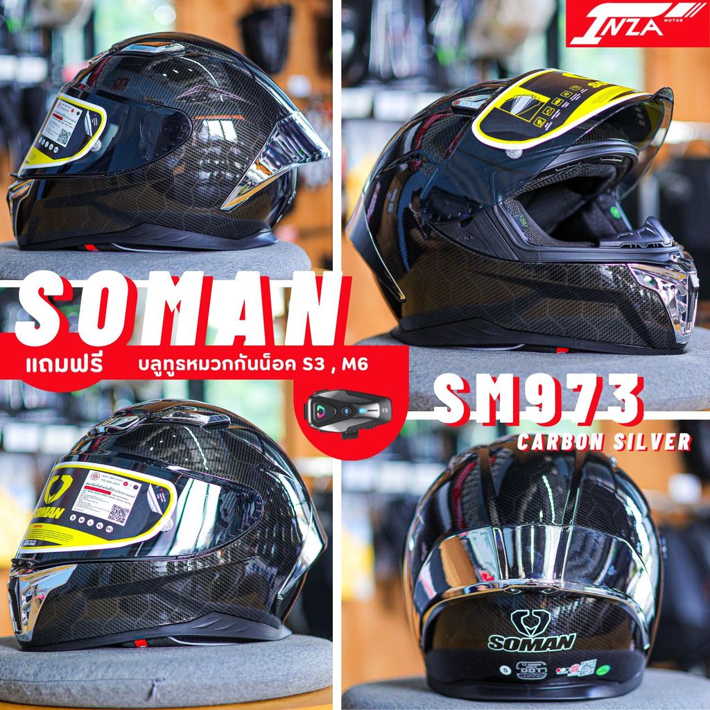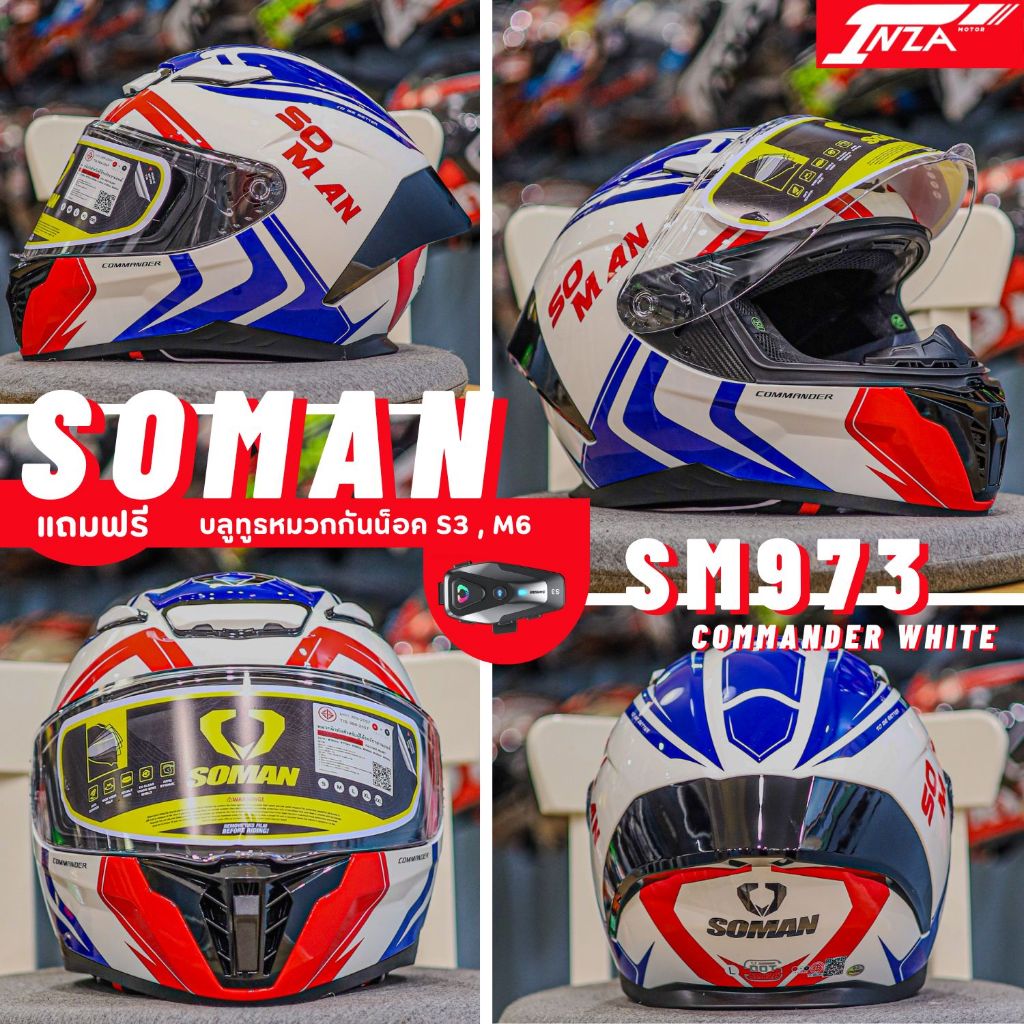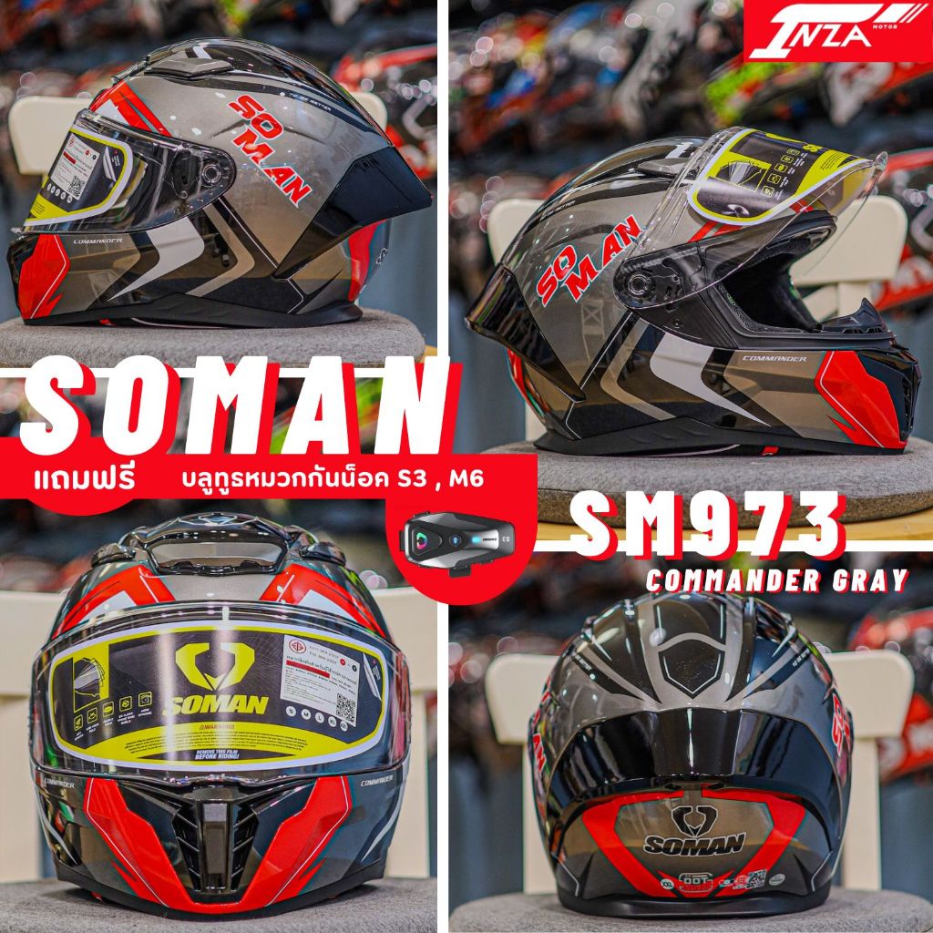 (เซ็ท+บลูทูธS3) SOMAN รุ่น SM973 หมวกกันน็อคเต็มใบ สปอร์ต น้ำหนักเบา รุ่นใหม่ล่าสุด 2025