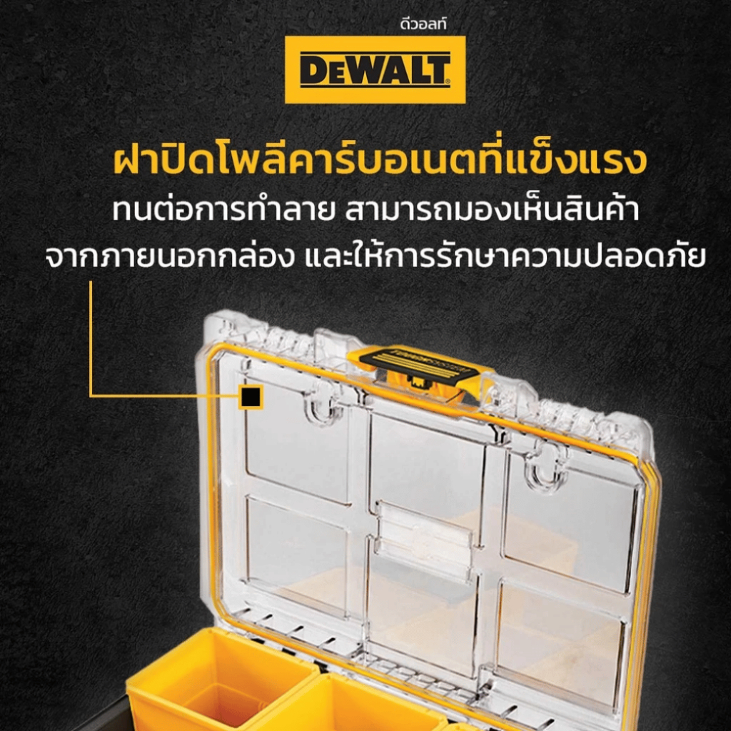 ? คุณสมบัติ กล่องเครื่องมือช่างฝาใส ToughSystem2.0 DEWALT รุ่น