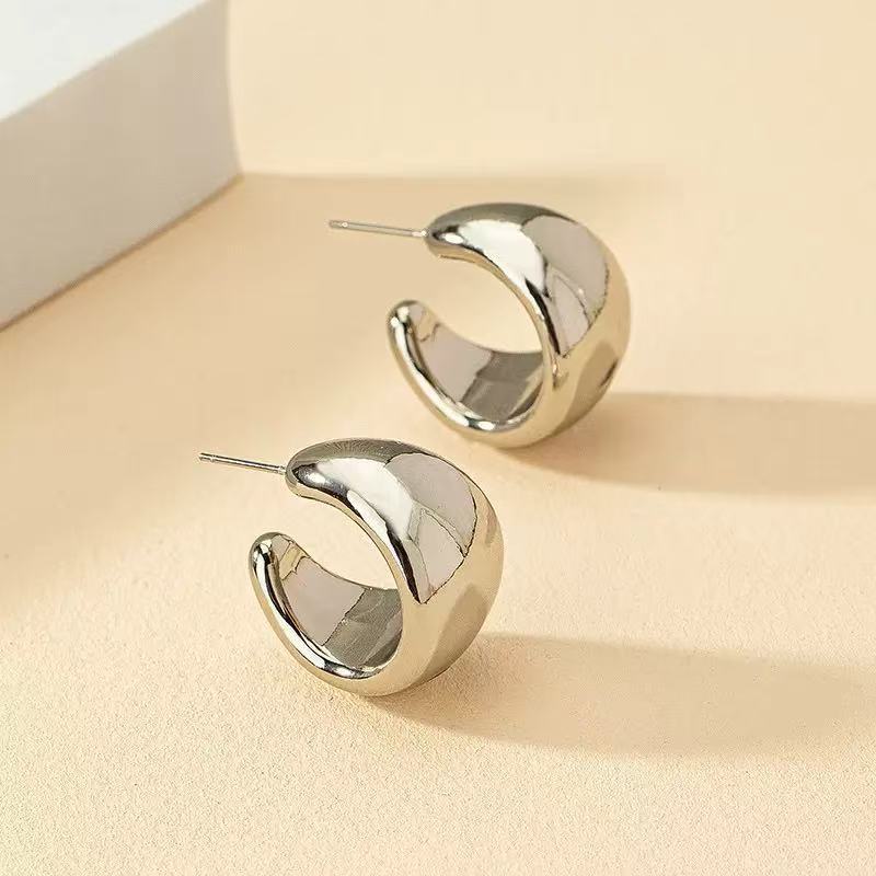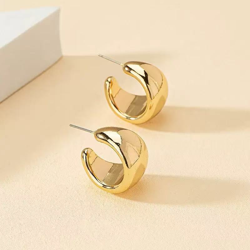 ขายดี ต่างหูทอง earring ต่างหูห่วง รูปตัว C ตุ้มหูห่วง หรูหรา jewelry accessories สําหรับผู้หญิง 92.5%เข็มเงิน