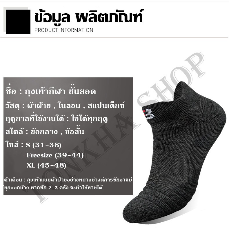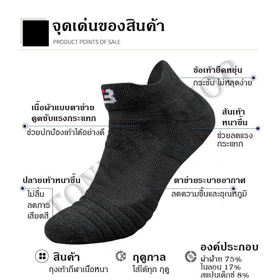 - ถุงเท้า กีฬา อย่างดี แบบหนา นุ่ม ลดแรงกระแทกได้ดี