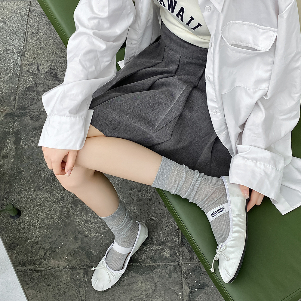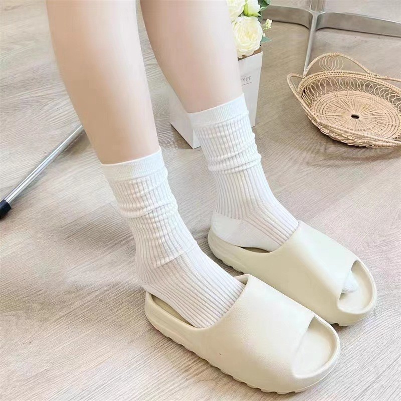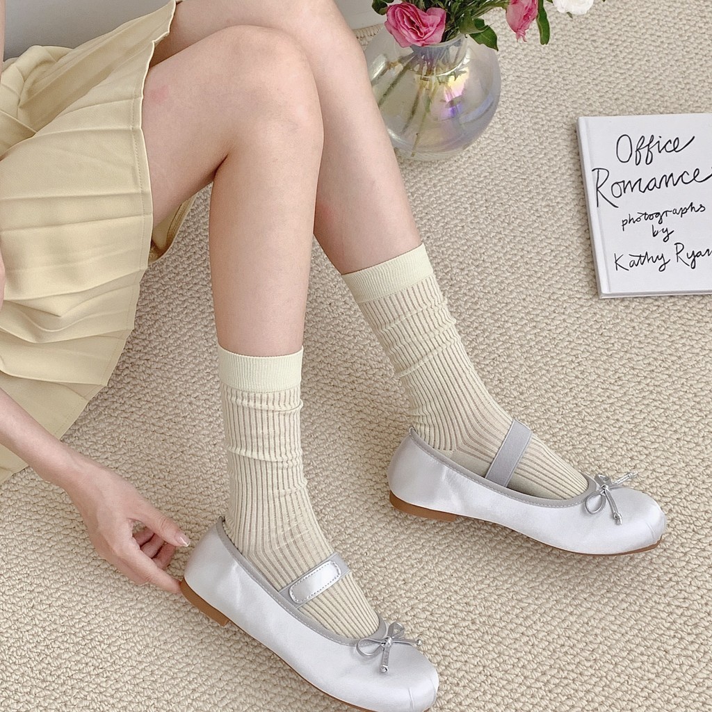 ?พร้อมส่งในไทย?ถุงเท้าผู้หญิง jk ถุงเท้านักเรียนแฟชั่น ผ้าถัก ลายทางแนวตั้ง สีทึบ นุ่มสบาย