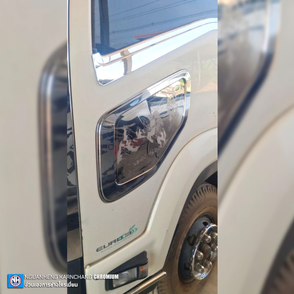 แผ่นปิดน่องประตูซ้าย เดกก้า240/300/360 เนื้องานสแตนเลส304 (ราคาต่อชิ้น) By ง่วนเฮง สำหรับรถบรรทุก