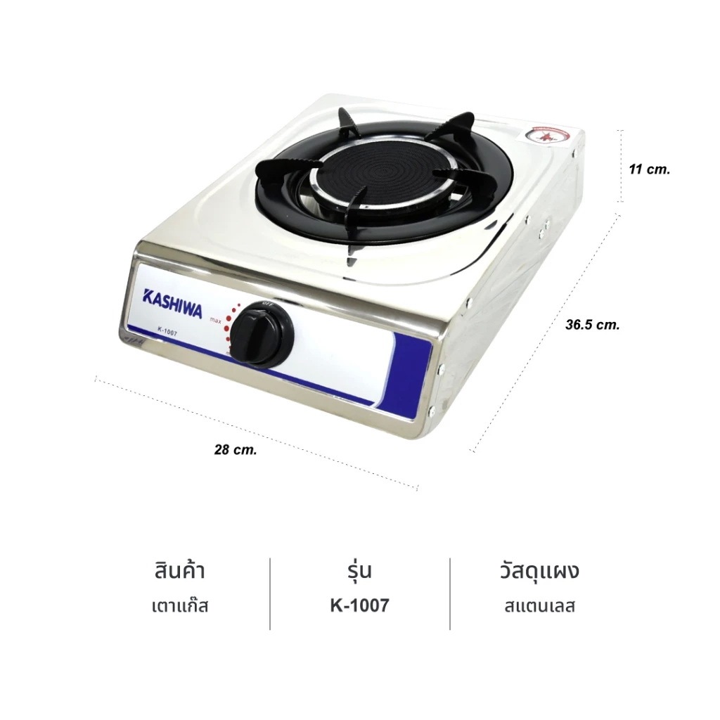 KASHIWA เตาแก๊สหัวเดี่ยว หน้าสเตนเลส รุ่น K-1007
