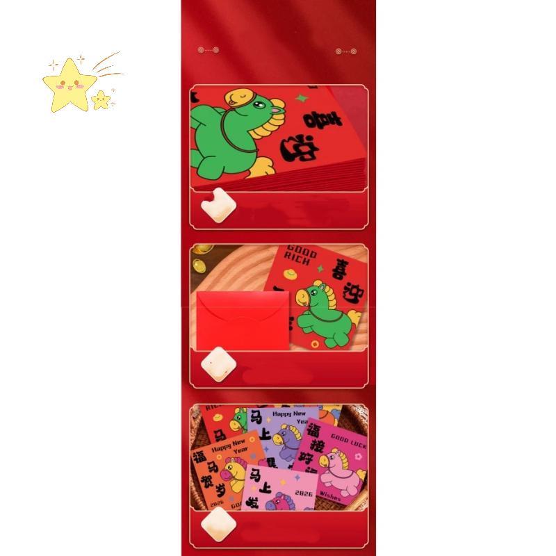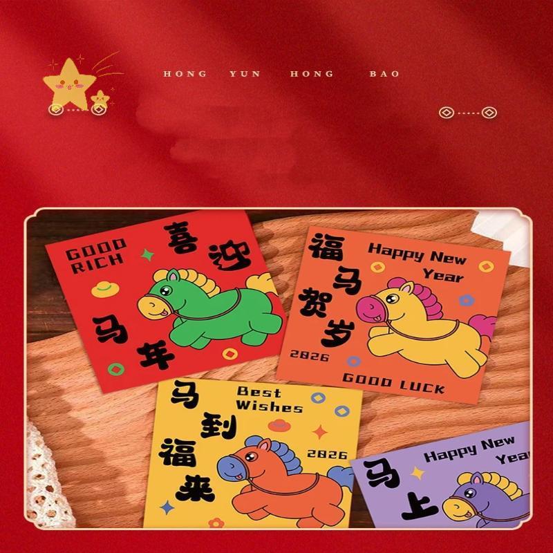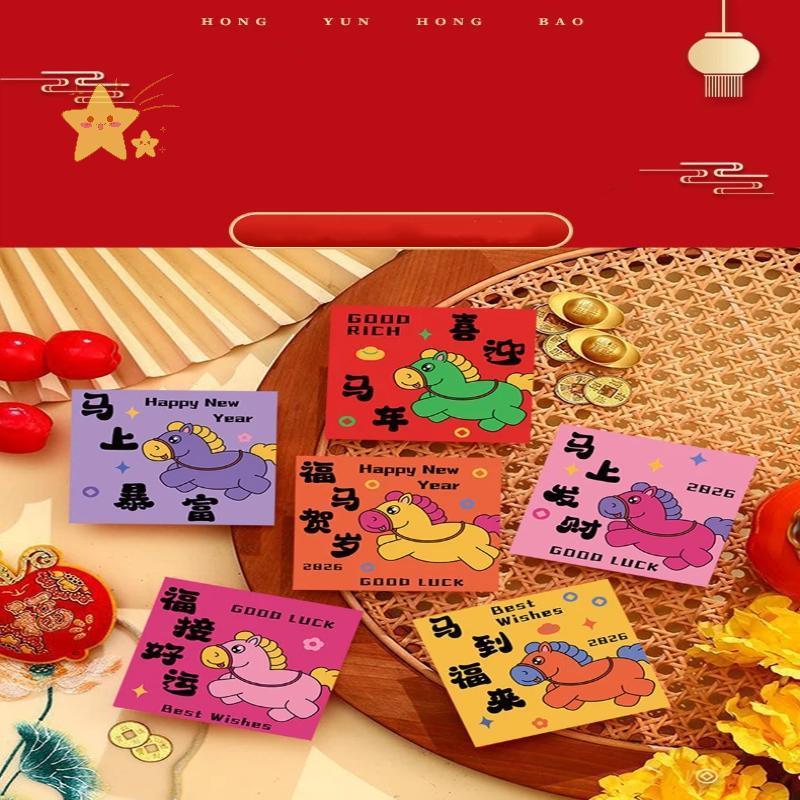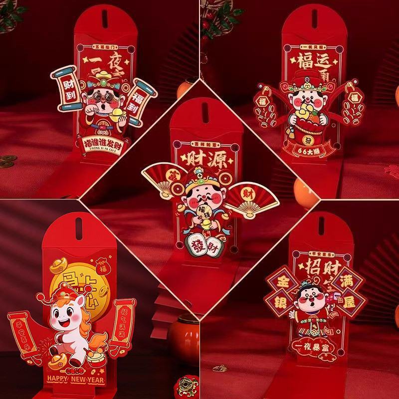 ตรุษจีน ซองแดงสำหรับปีม้า ซองอั่งเปาแบบพับได้ 3D 2026 Lucky Money ชิ้นตรุษจีนซองจดหมายสีแดง ตกแต่ สไตล์จีนอั่งเปา