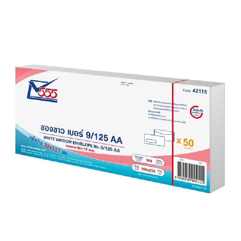 - ขนาด: 9.5 ซม. * 18 ซม.