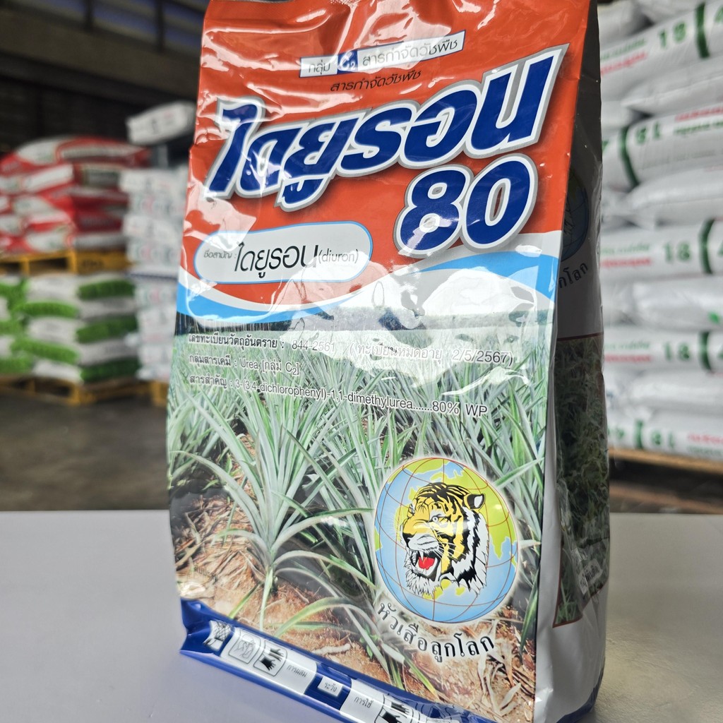 ไดยูรอน80 สารคุมวัชพืช 1กก. (ตรา หัวเสือลูกโลก) คุมหญ้าก่อนและหลังงอก ตีนนก หญ้าตีนกา หญ้าไม้กวาด หญ้าปากควาย