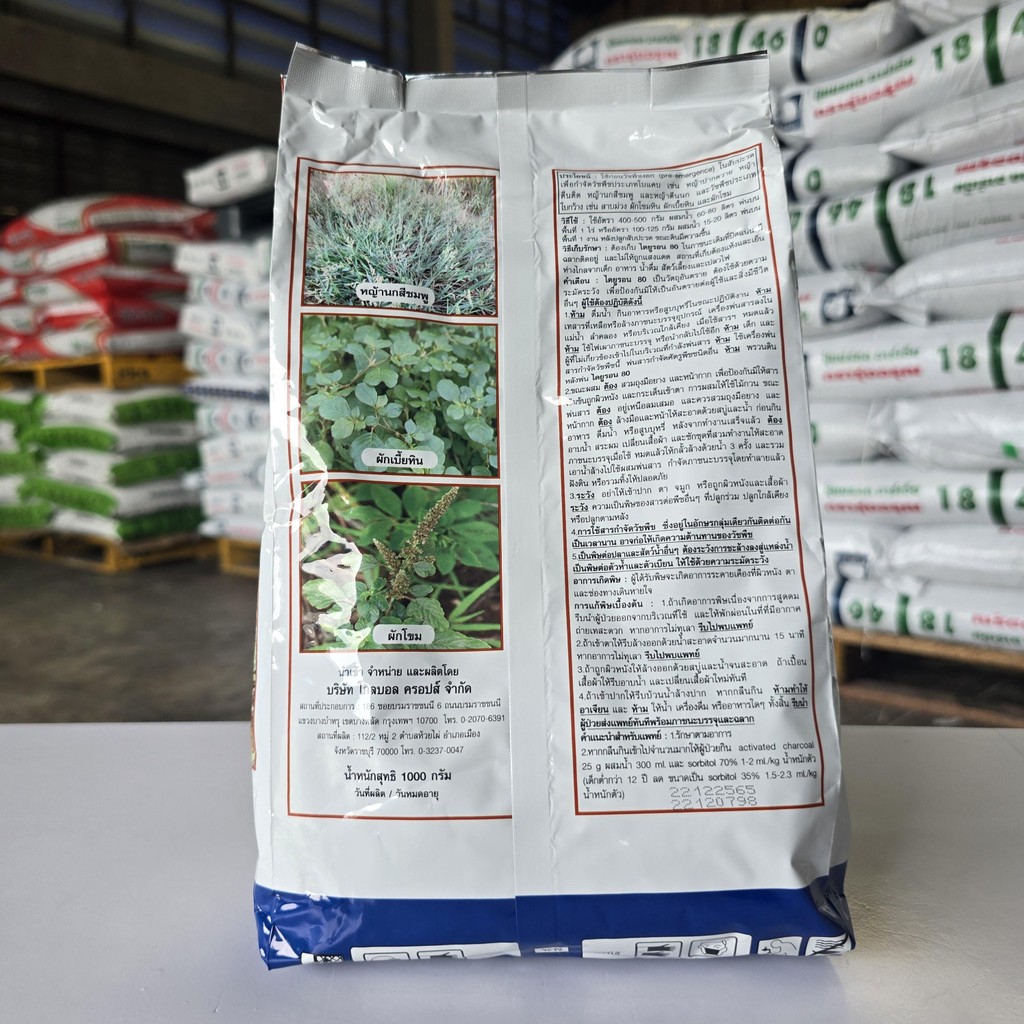 -คุณสมบัติ : ชนิดผง สารคุมวัชพืชก่อนและหลังงอก เช่น หญ้าตีนนก หญ้าตีนกา หญ้าตีนติด หญ้าไม้กวาด หญ้ารังนก