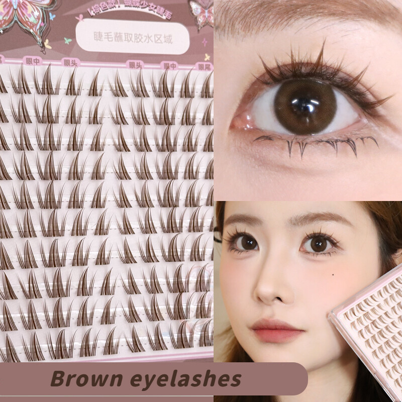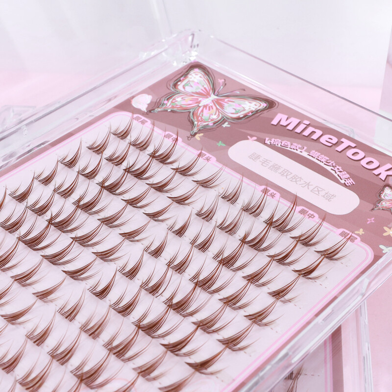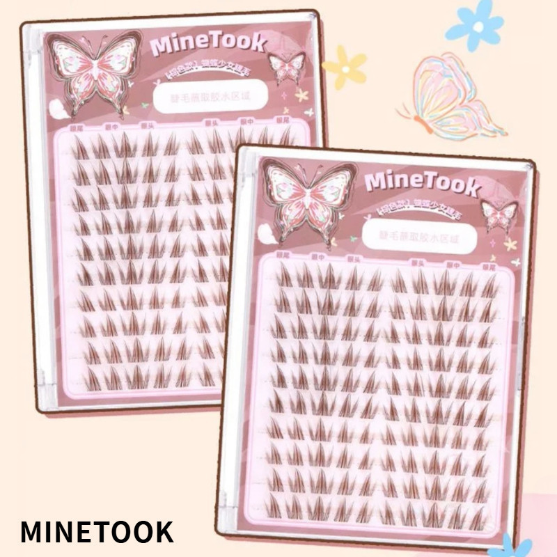 MINETOOK ขนตาปลอมสีน้ำตาลธรรมชาติอ่อนโยนและก้านบาง