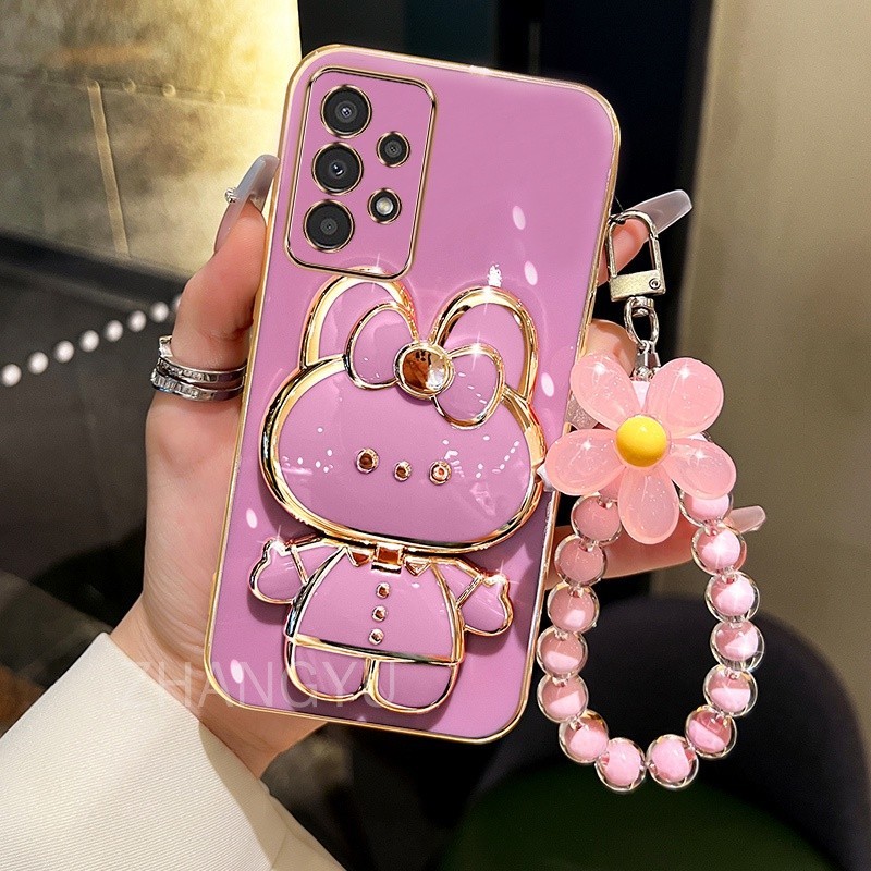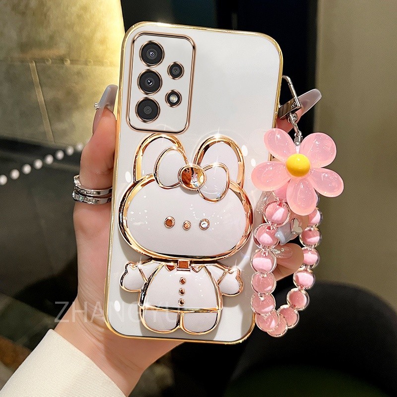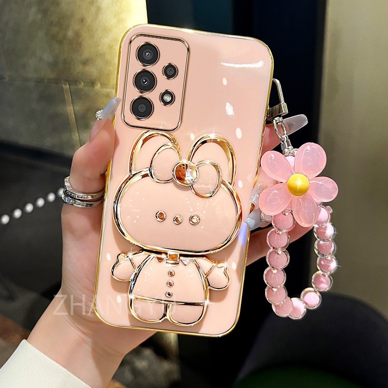 ปลอก Samsung A32 4G 5G A52 A52S A72 เคสโทรศัพท์ TPU 3D กระต่ายสเตอริโอขาตั้ง Ultra Thin Electroplated Soft Case Shock Protection Case พร้อมสร้อยข้อมือ