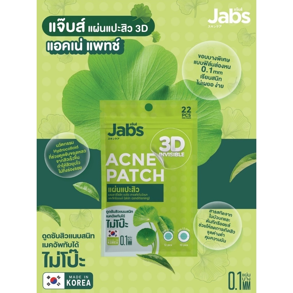 Jabs แผ่นแปะสิวแจ๊บส์ 3D อินวิซิเบิล แอคเน่แพ็ทช์