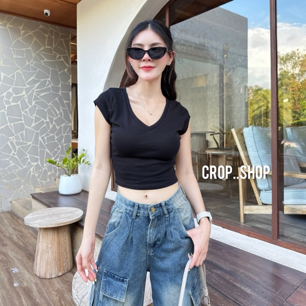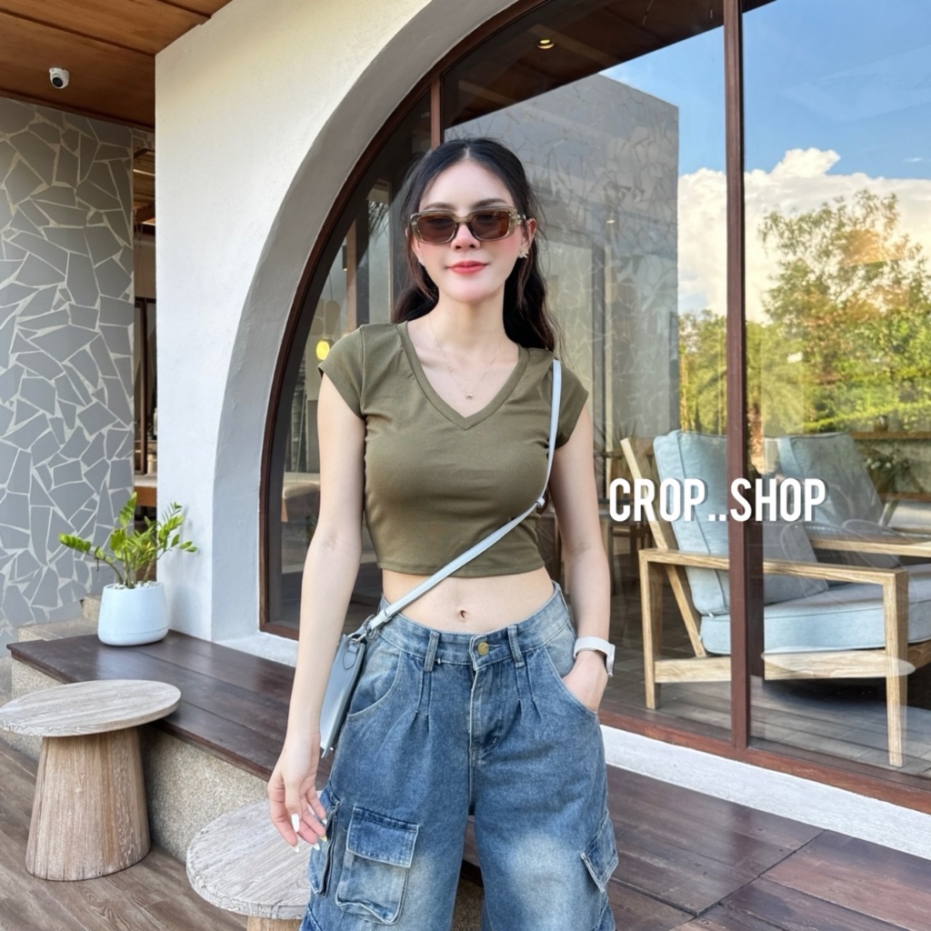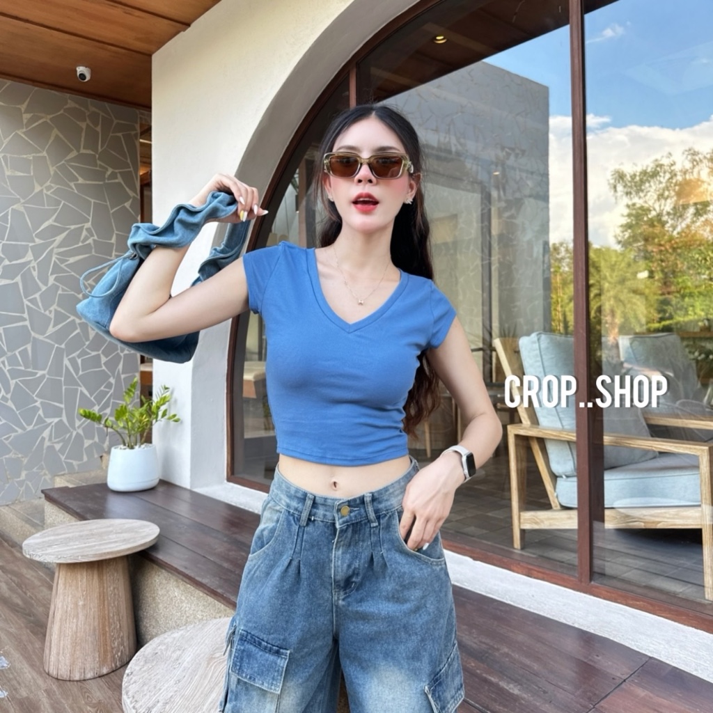 crop..shop เสื้อเเขนสั้นคอวี สวยเก๋เท่ในตัวเดียว ผ้านิ่มใส่สบายไม่อึดอัด เข้ากับทุกชุดใส่ไปได้ทุกสถานที่ ของควรมีจ้า