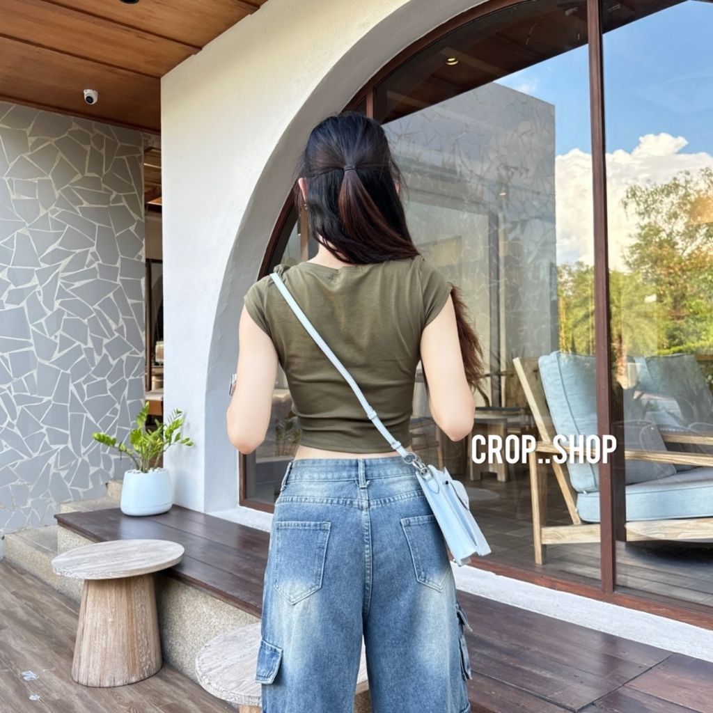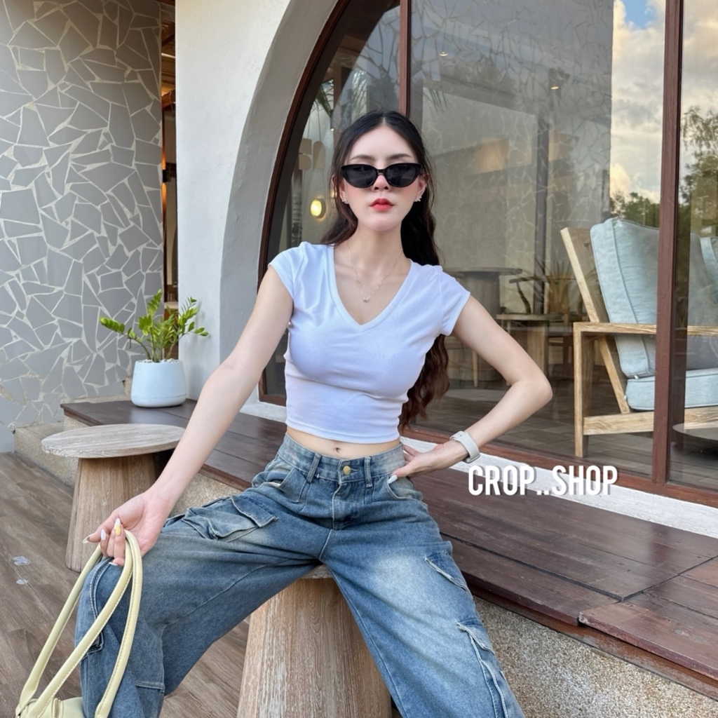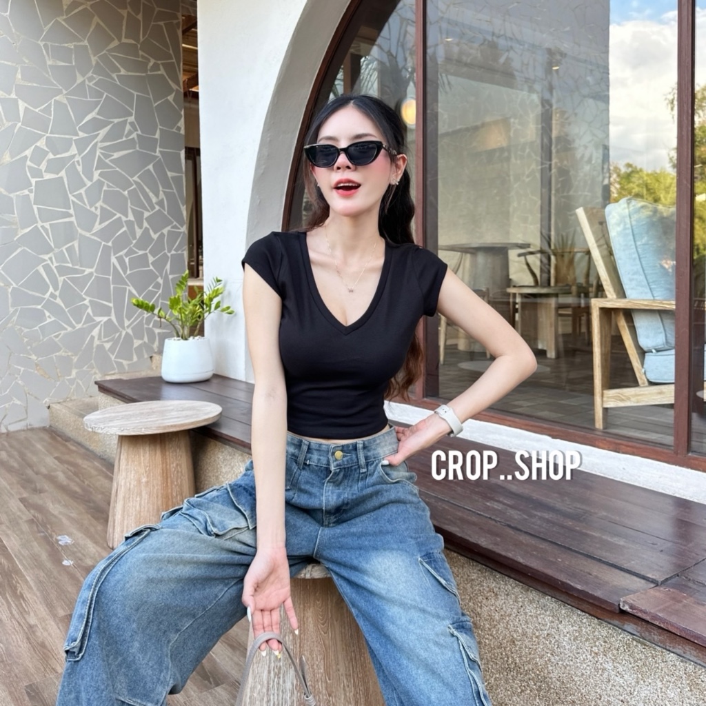 crop..shop เสื้อเเขนสั้นคอวี สวยเก๋เท่ในตัวเดียว ผ้านิ่มใส่สบายไม่อึดอัด เข้ากับทุกชุดใส่ไปได้ทุกสถานที่ ของควรมีจ้า