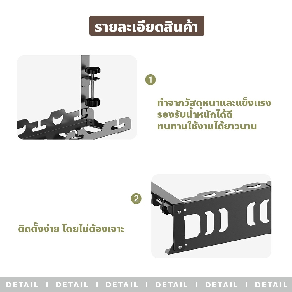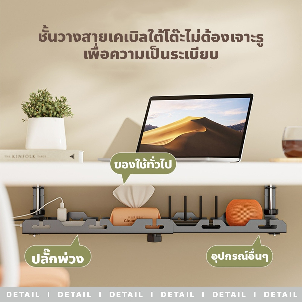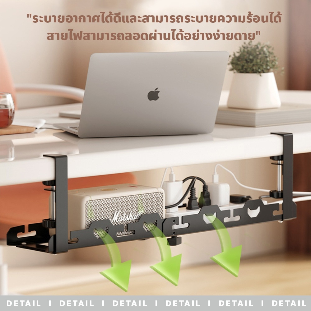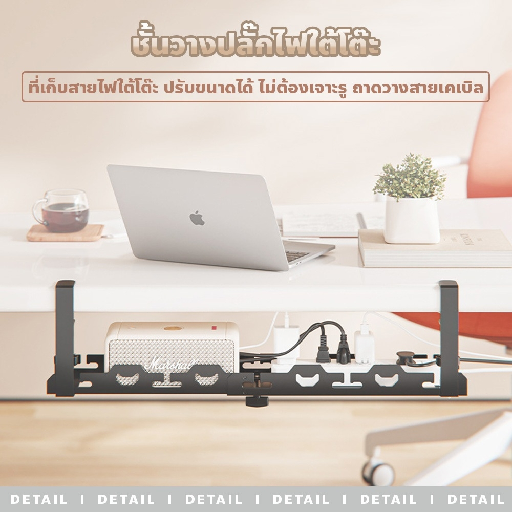 ที่เก็บสายไฟใต้โต๊ะ ปรับขนาดได้ ไม่ต้องเจาะรู ถาดวางสายเคเบิล รางเก็บปลั๊กไฟ