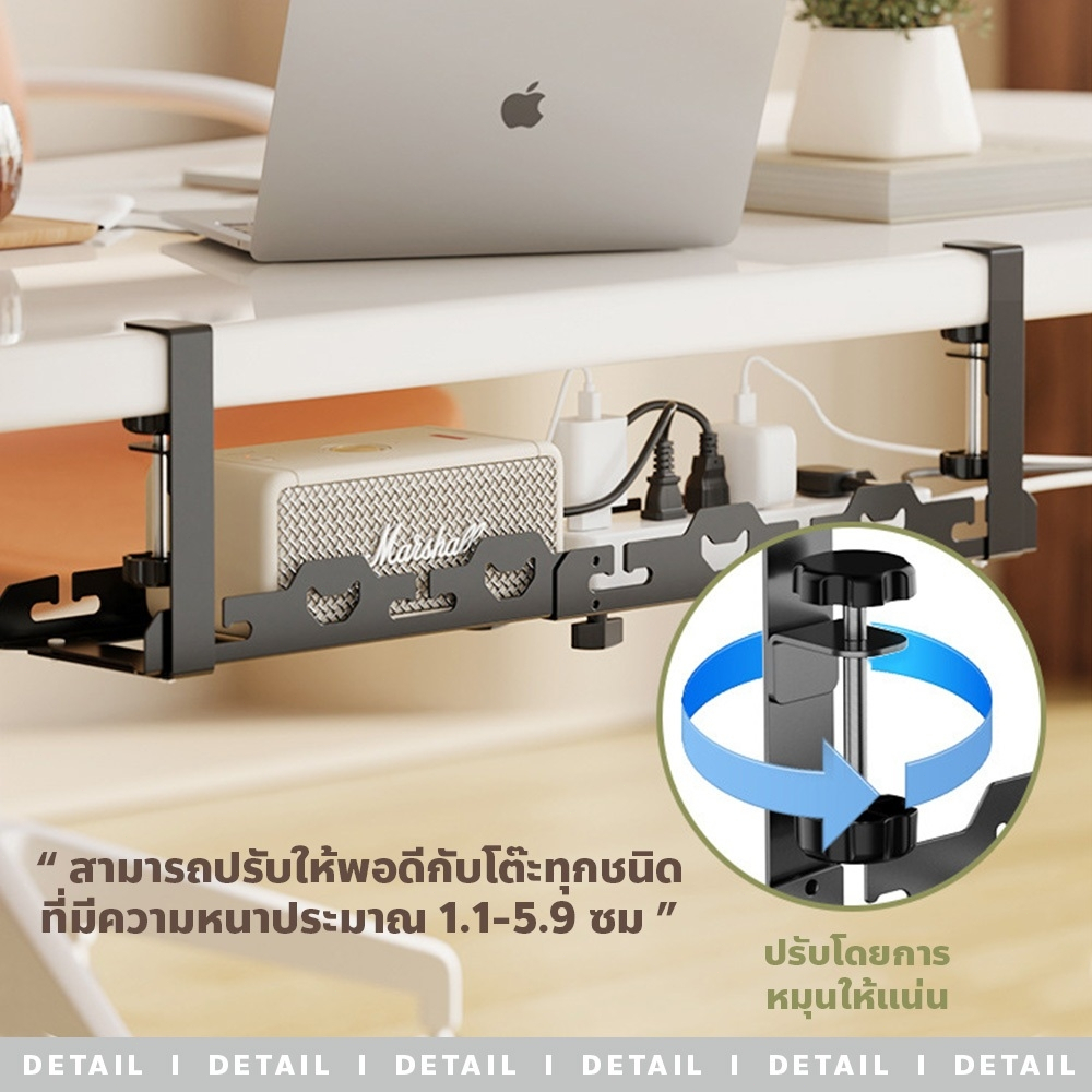 doti รางเก็บสายไฟใต้โต๊ะ ปรับความยาวได้ ที่แขวนปลั๊กไฟและสายเคเบิล แบบไม่ต้องเจาะ