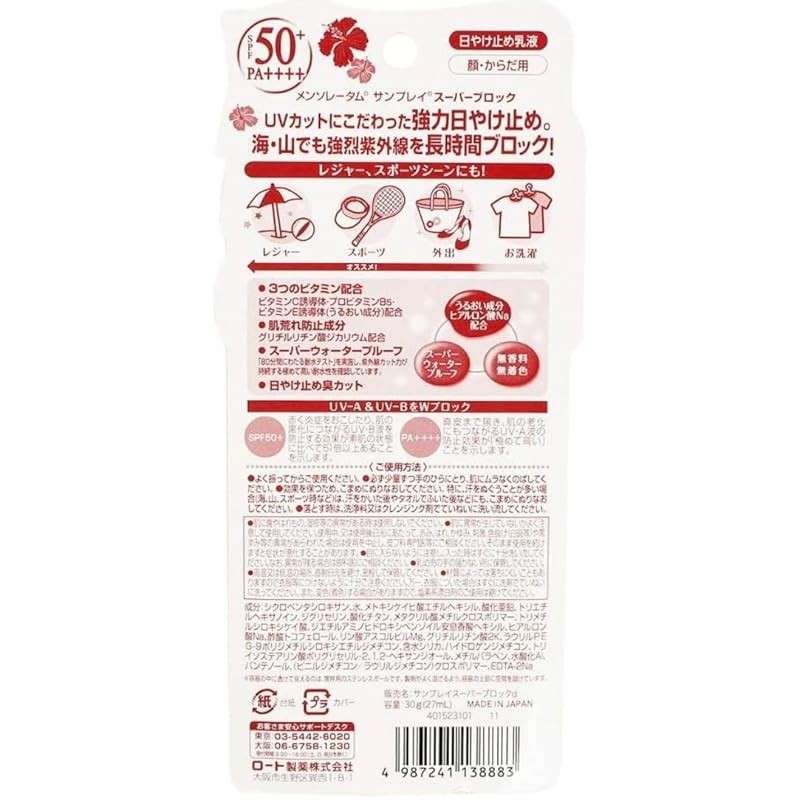Product name: Mentholatum Sunplay Super Block Unscented SPF50+ PA++++ 30g * Super Waterproof